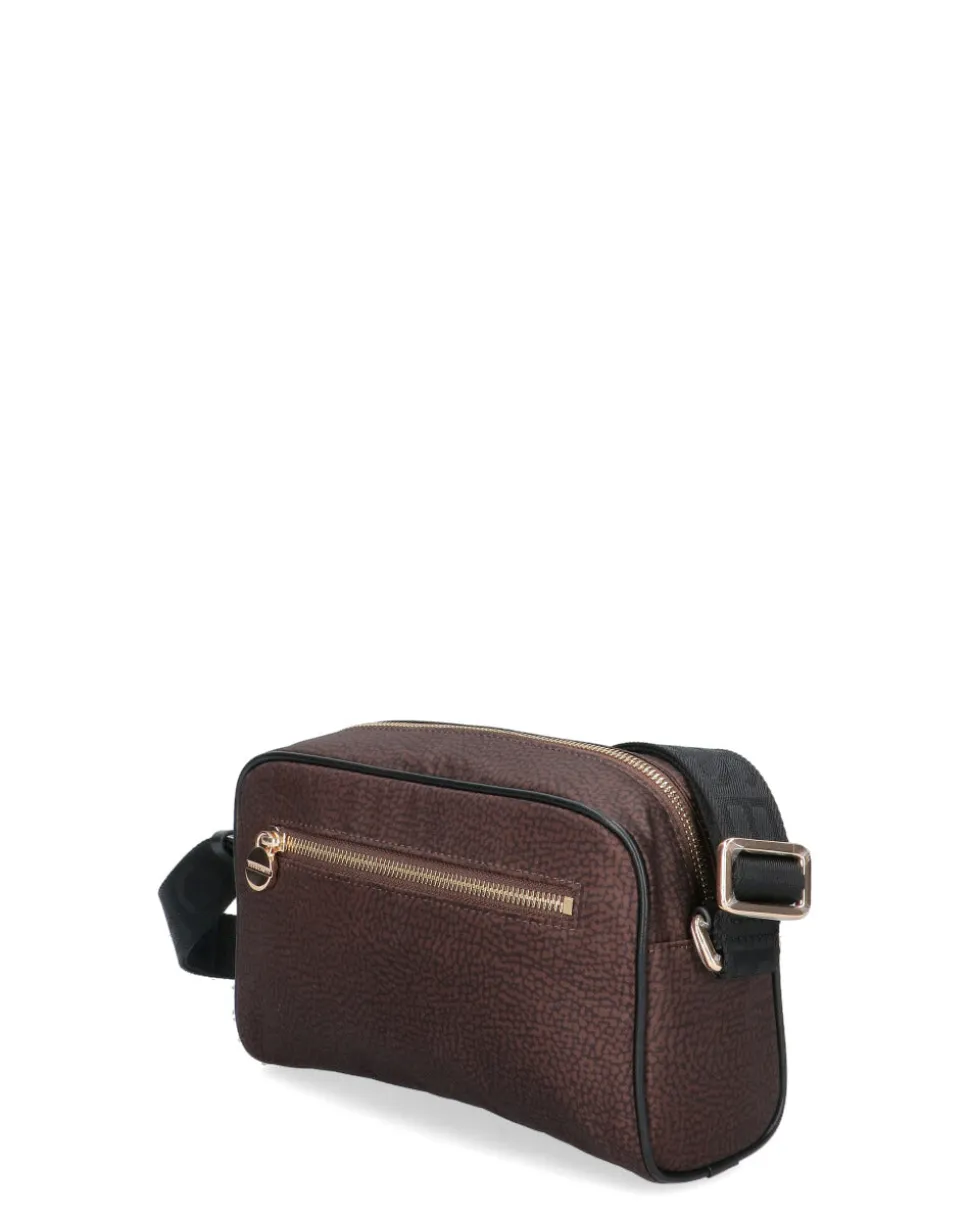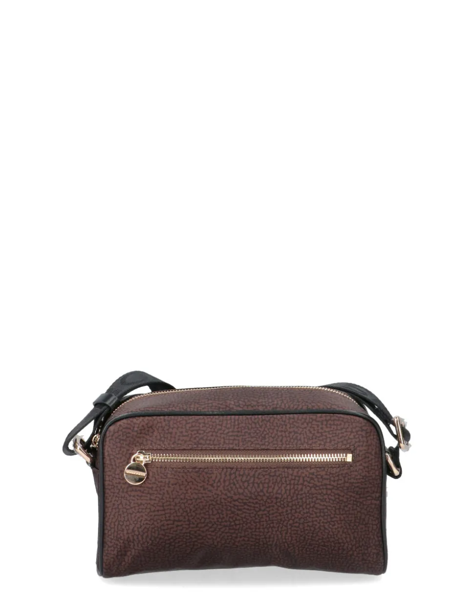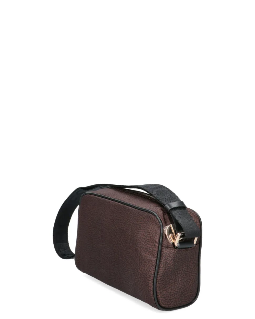 Tracollina Small in Nylon Riciclato Castagna Nero Borbonese, compatta e sportiva borsa a bandoliera in tessuto sintetico riciclato, con taschino frontale con cerniera e tracolla in nastro logato regolabile. Comparto con cerniera e interno foderato.