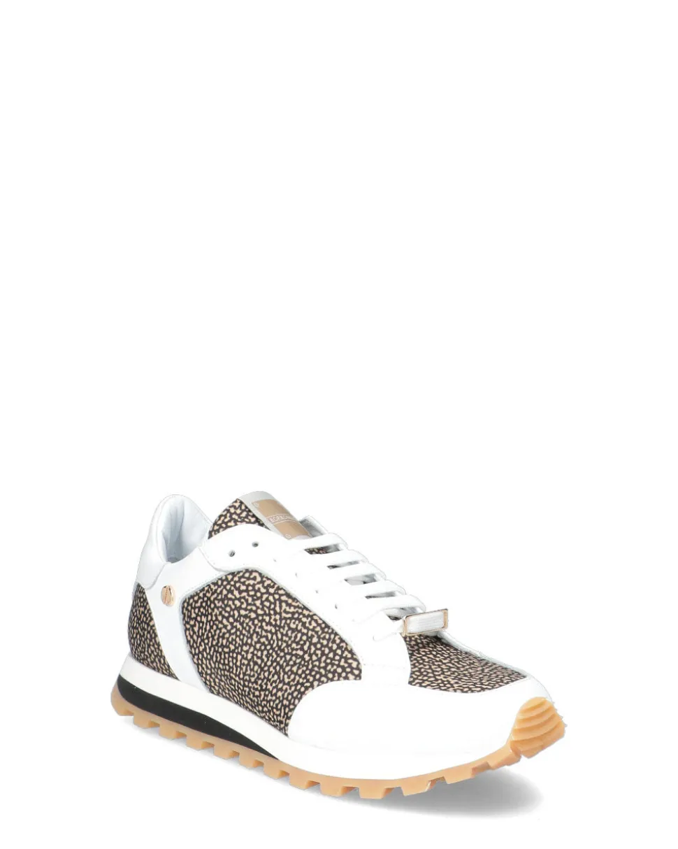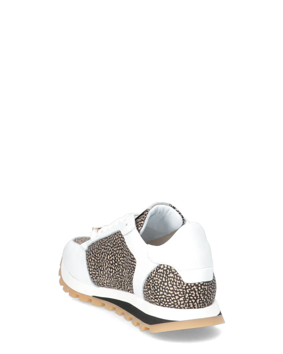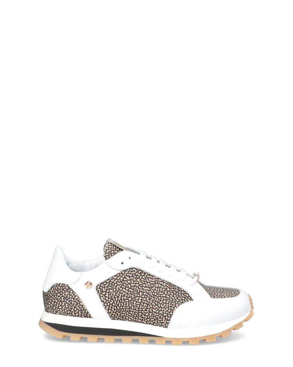 Sneakers in pelle e tessuto con stampa classica Borbonese