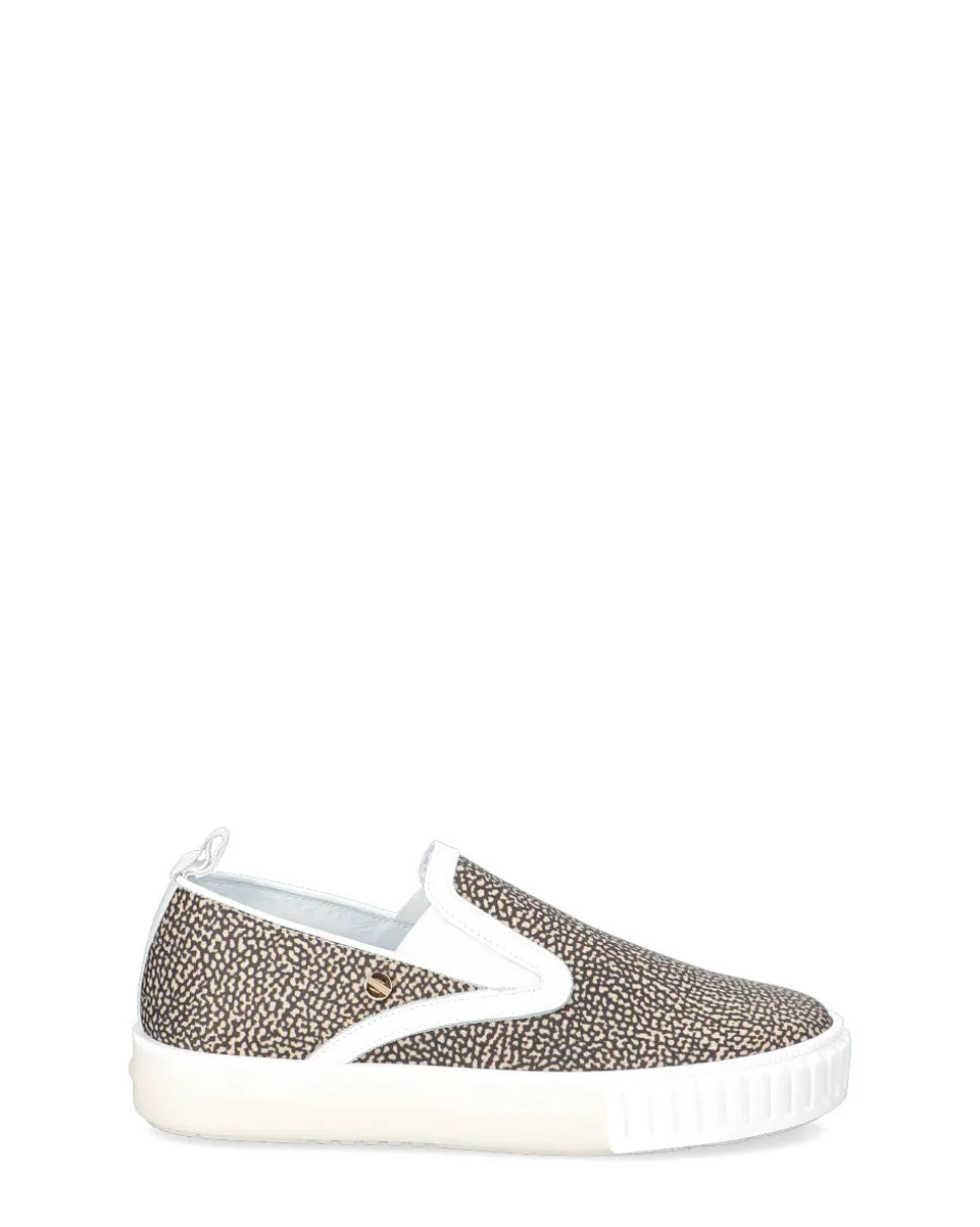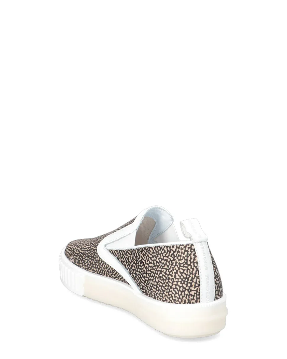 Slip on in pelle con stampa tessuto op classic Borbonese