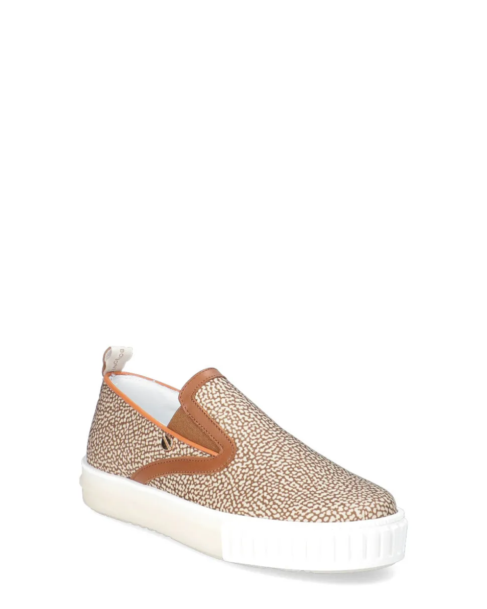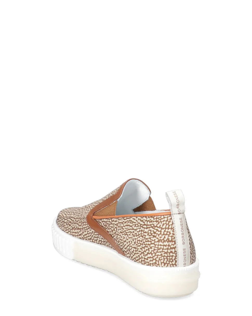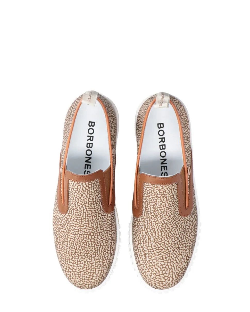 Slip on in pelle con stampa tessuto op classic Borbonese