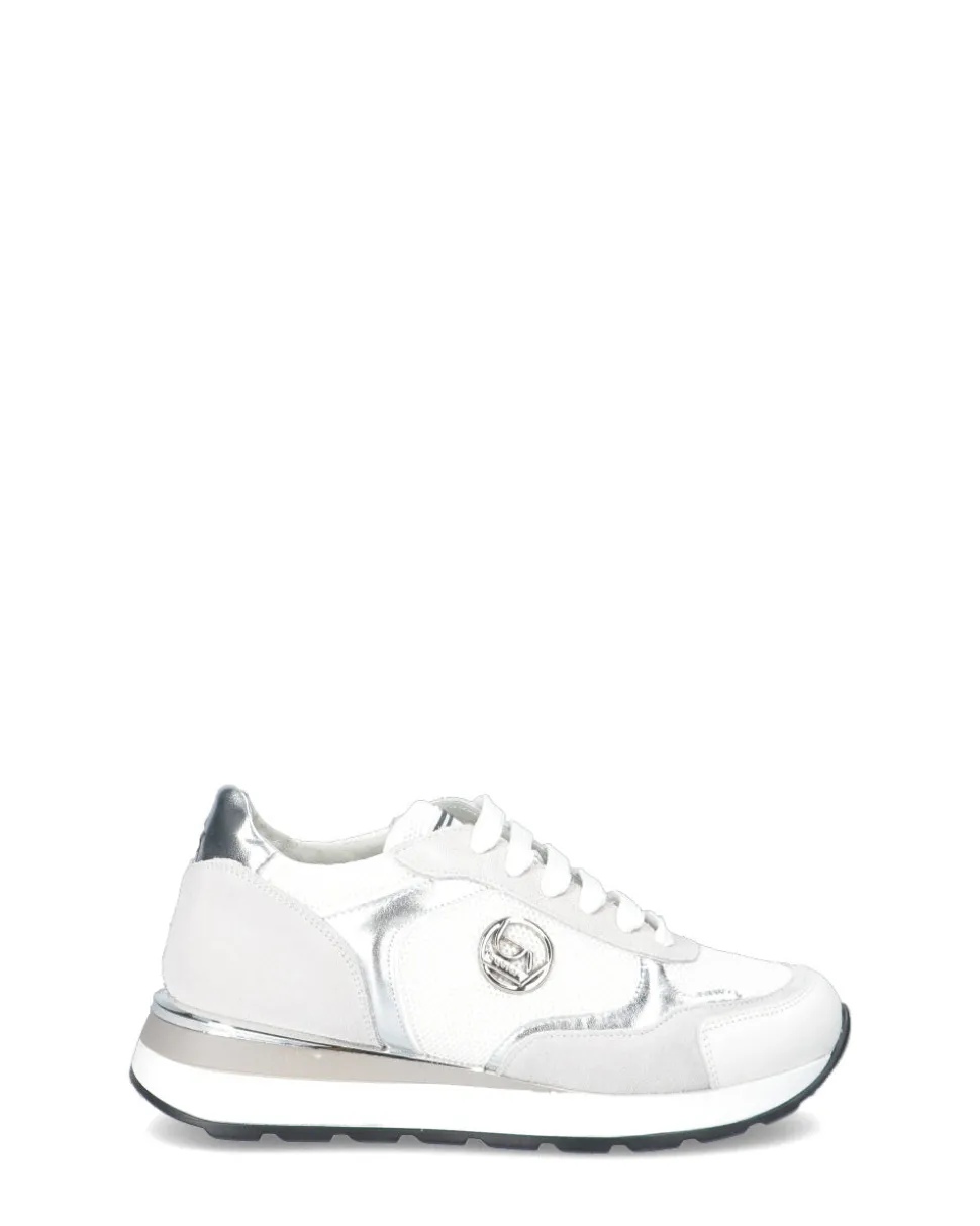 Sneakers ragazza in pelle e tessuto , logo laterale