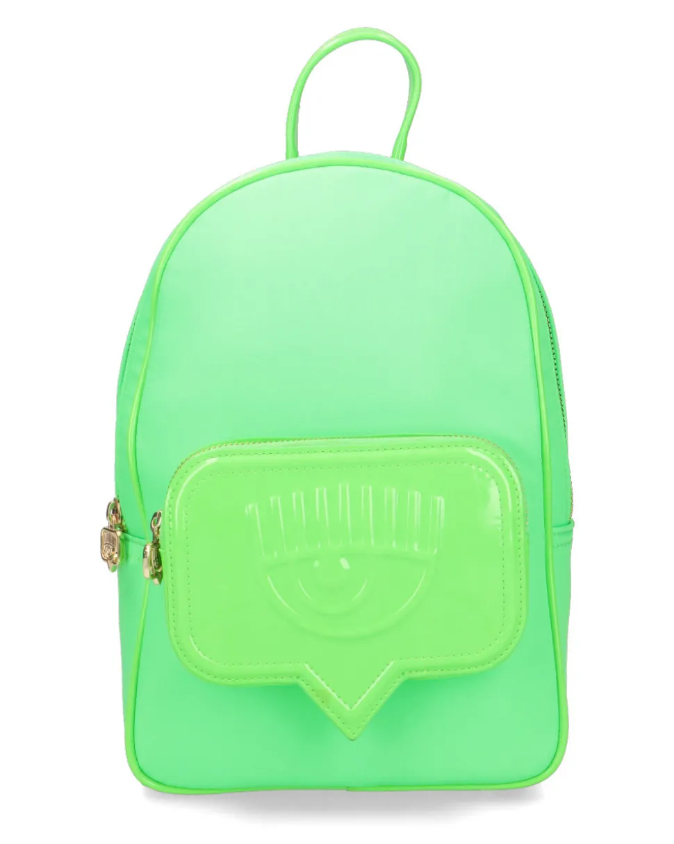Zaino in tessuto sintetico con bretelle logate e dettaglio lucido Eyelike sul davanti.
