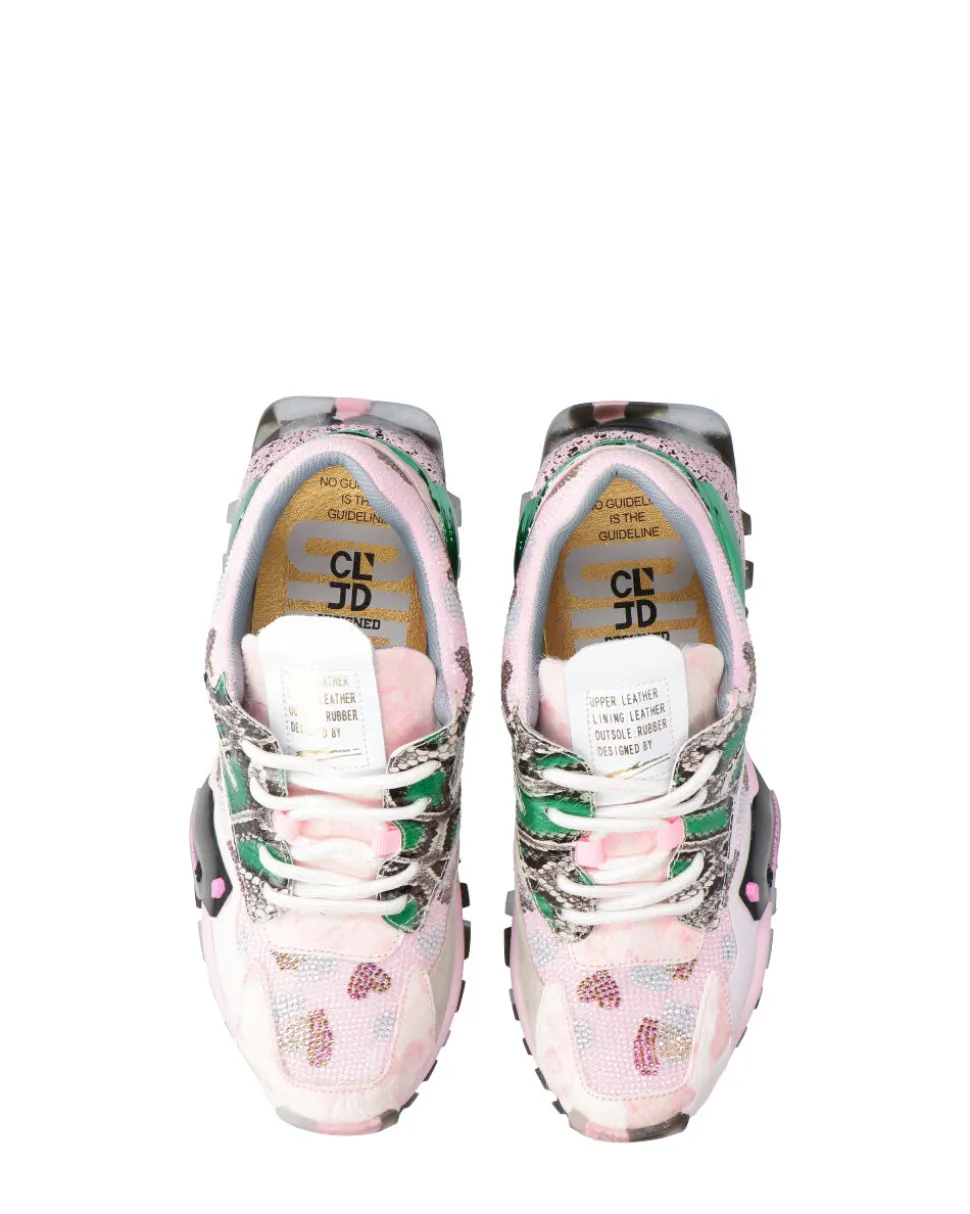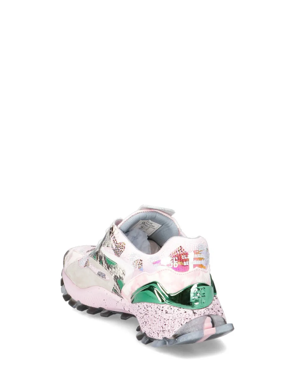 Sneaker in pelle laminata effetto crack, pelle multi pach, pvc lavorati.