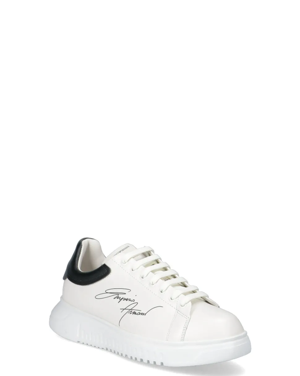 Sneakers in pelle con logo signature e suola zigrinata