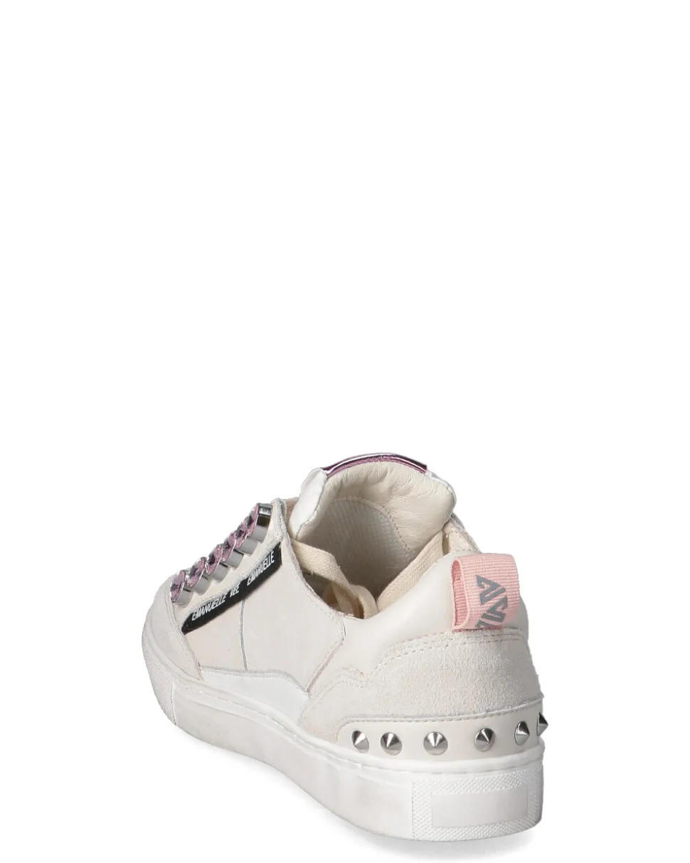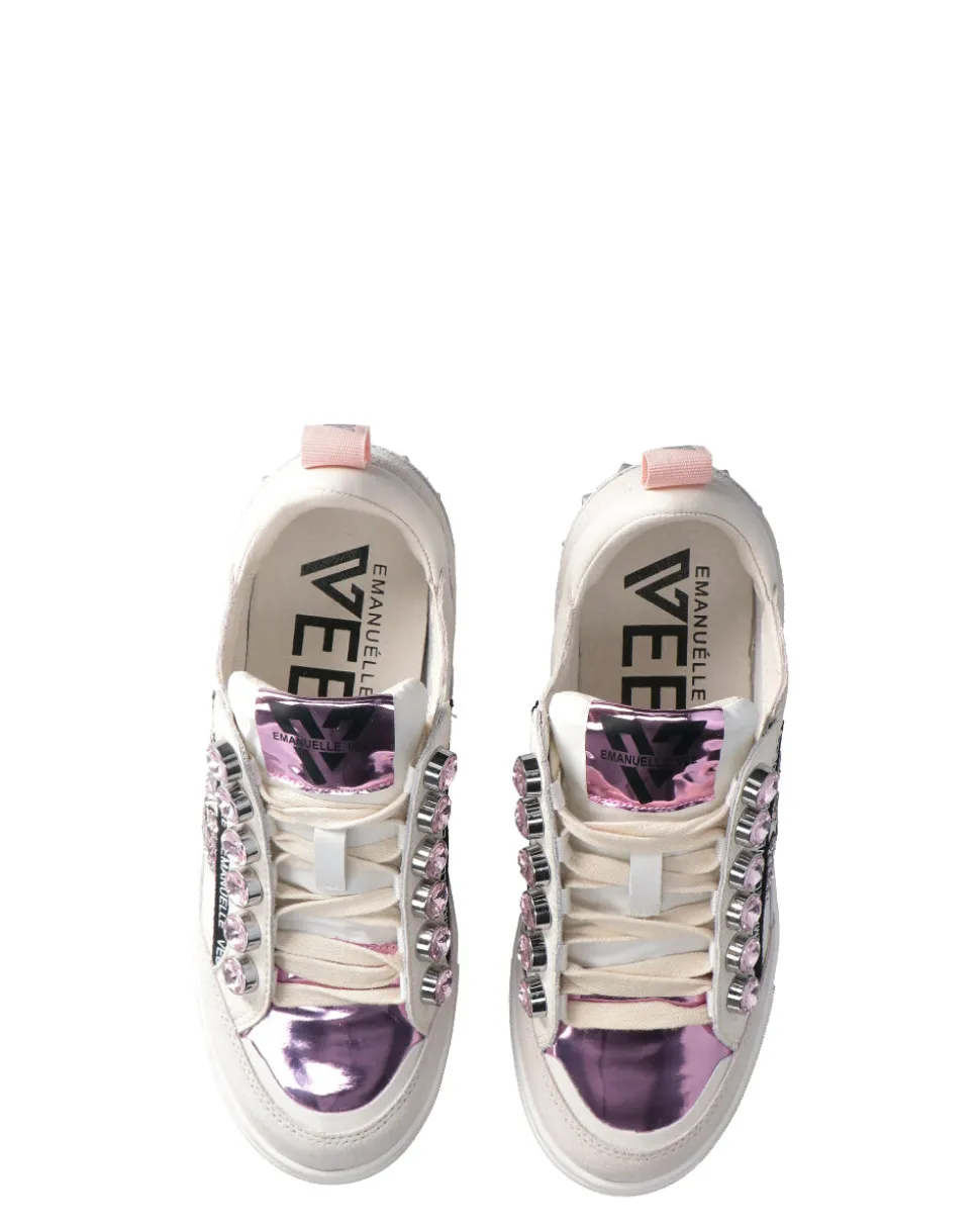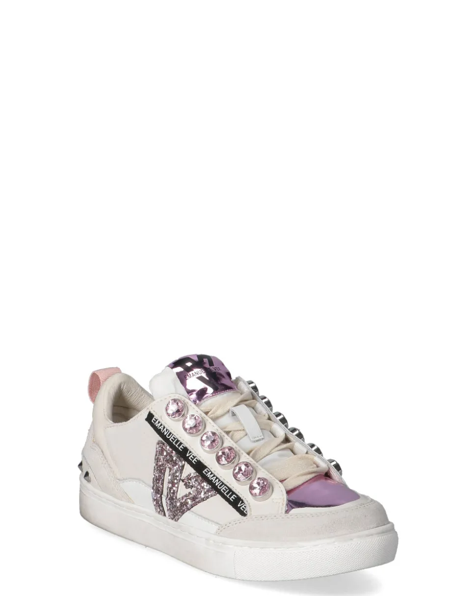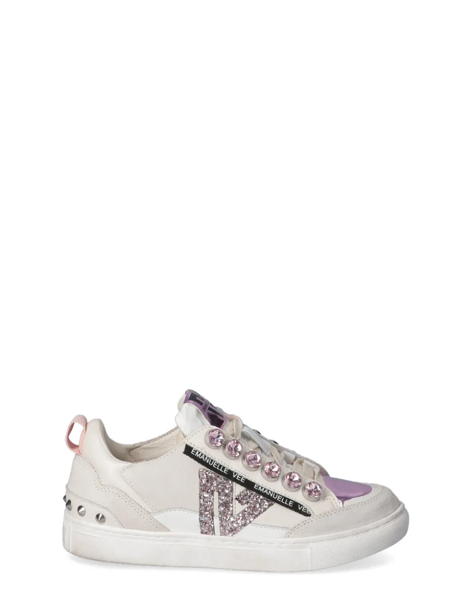 Sneaker allacciata multi materiale con dettaglio strass sull’allacciatura