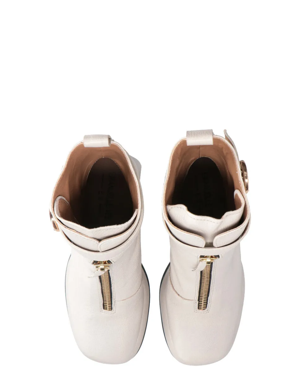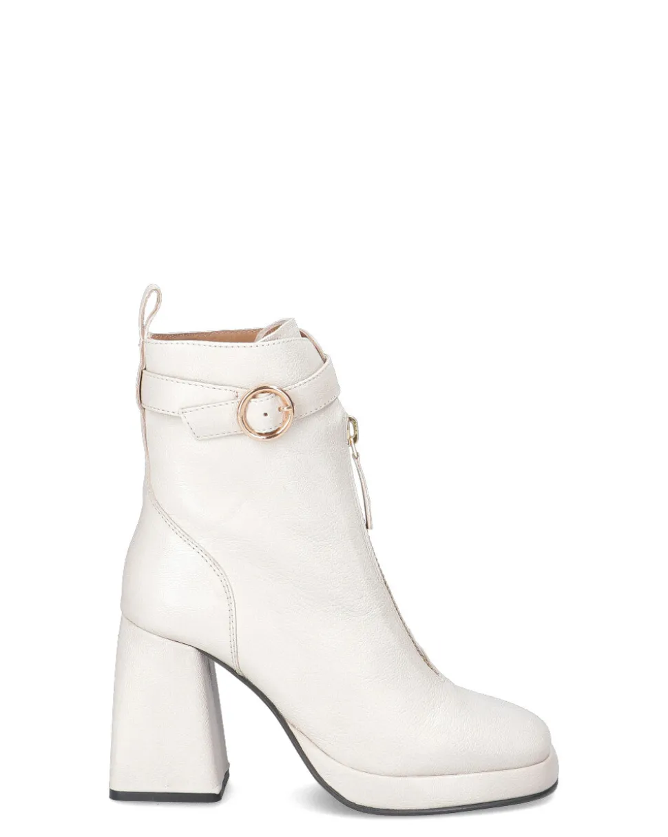 Tronchetto in pelle bottalata con zip centrale e cinturino alla caviglia