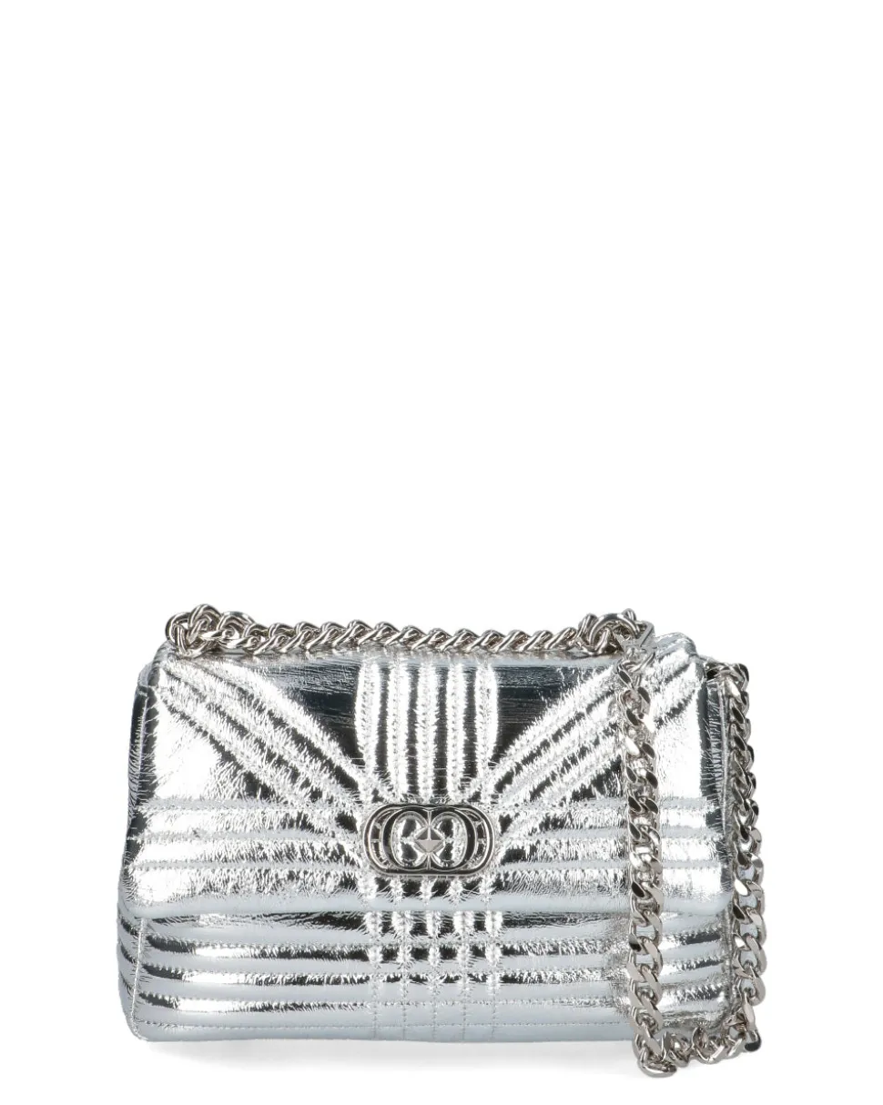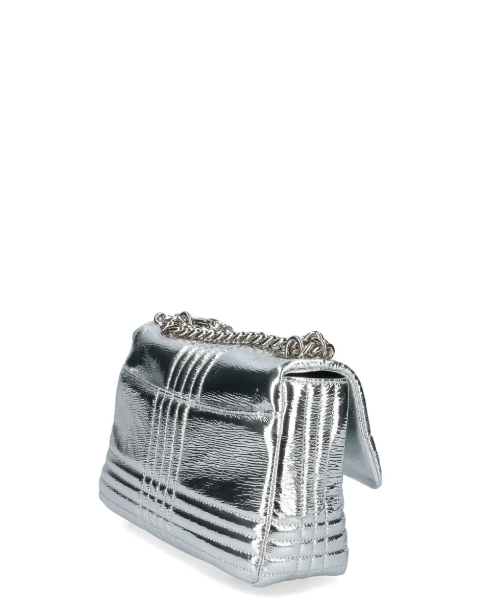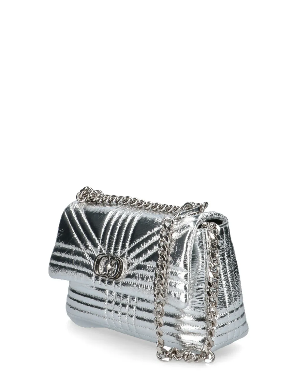 Borsa a mano in pelle laminata , imbottita e trapuntata con tracolla a catena