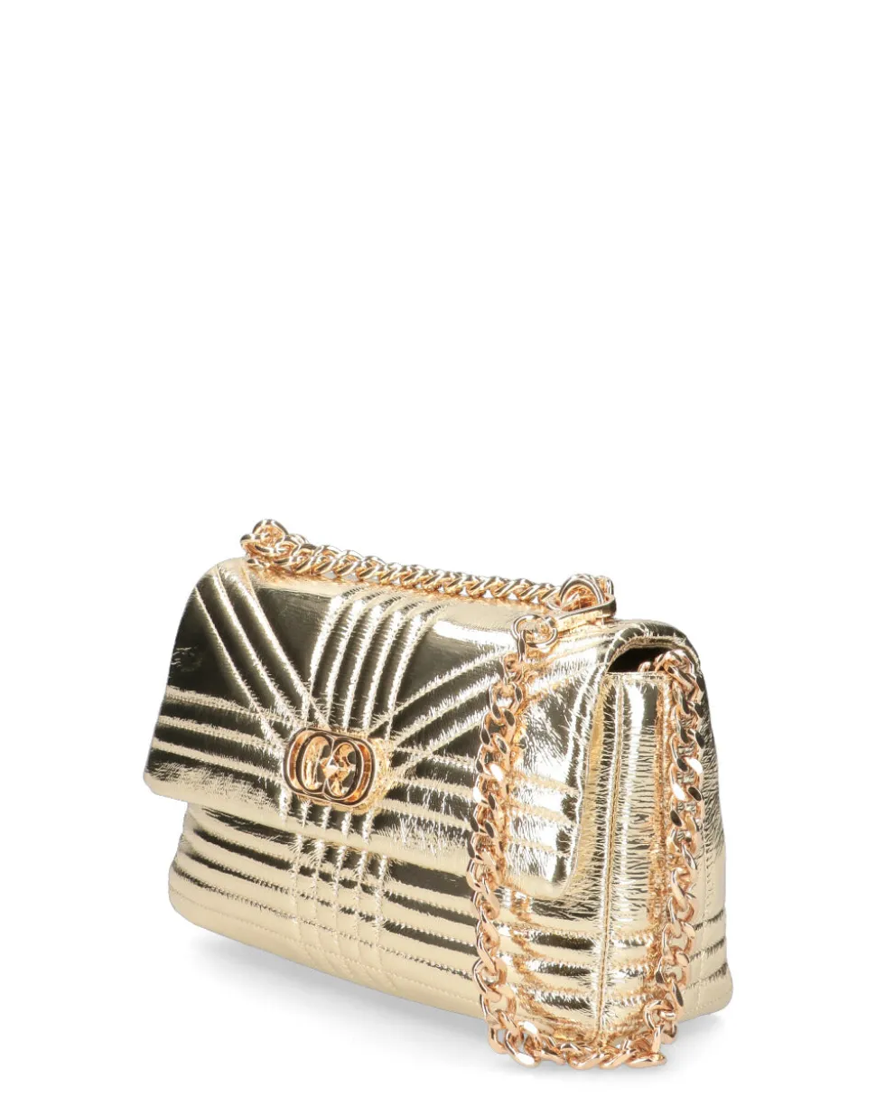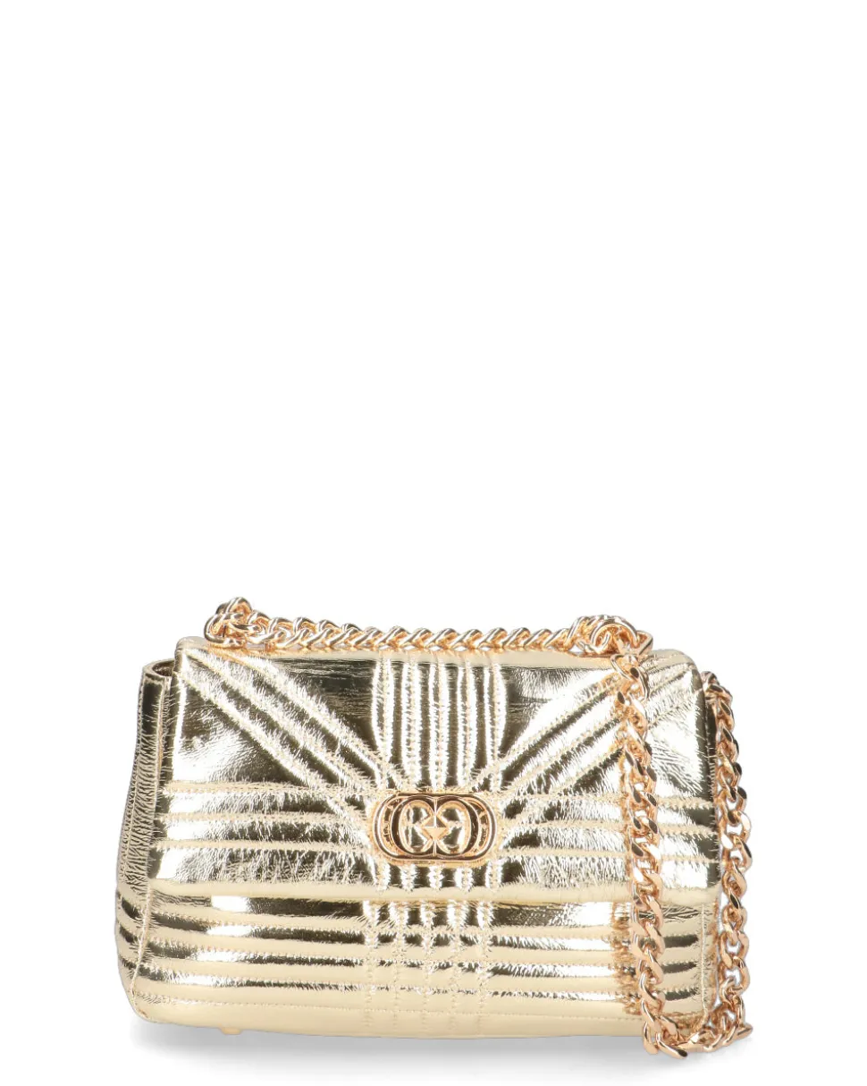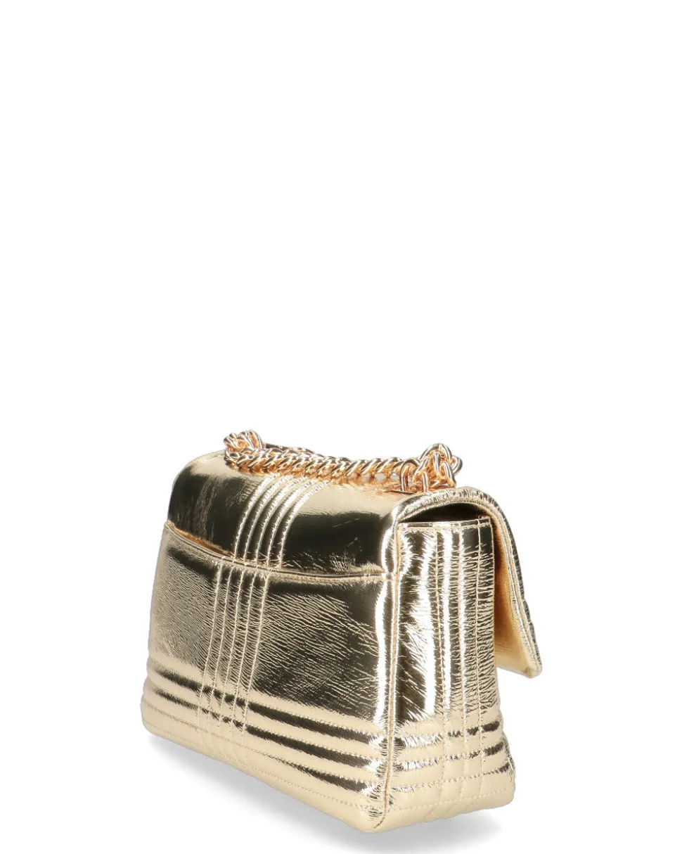 Borsa a mano in pelle laminata , imbottita e trapuntata con tracolla a catena