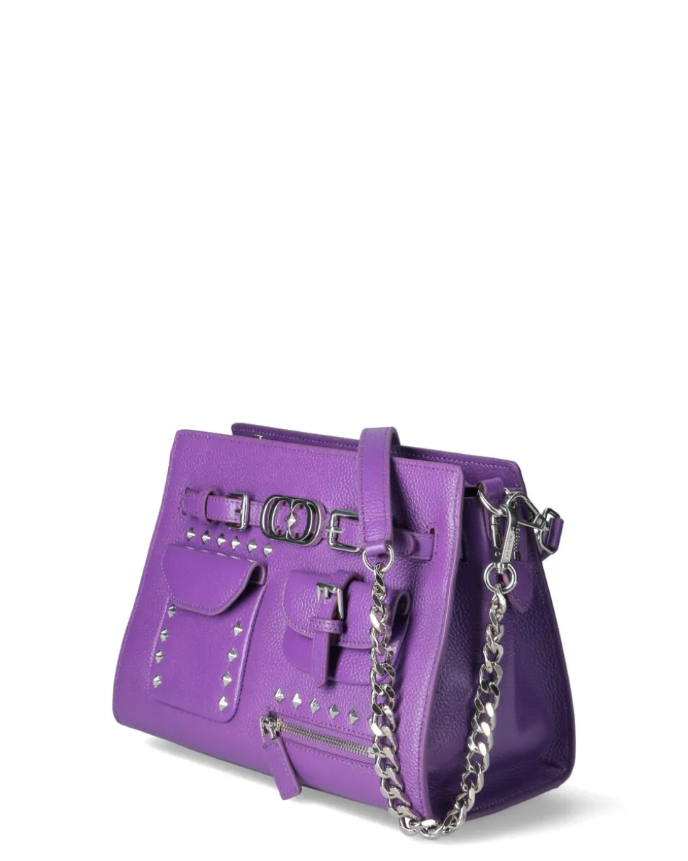 Tracolla media in ecopelle con borchie , chiusura con zip, tracolla non regolabile