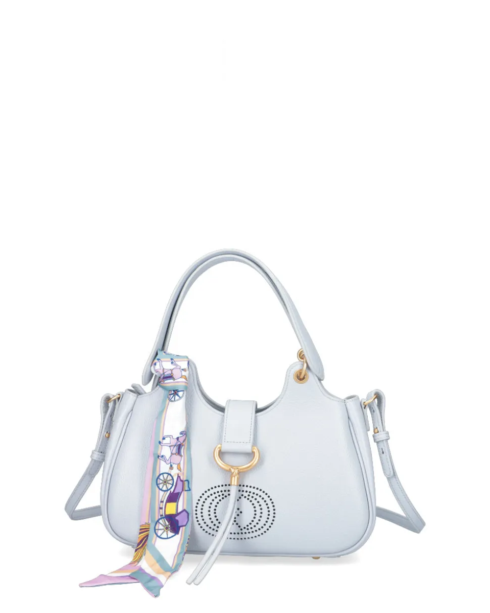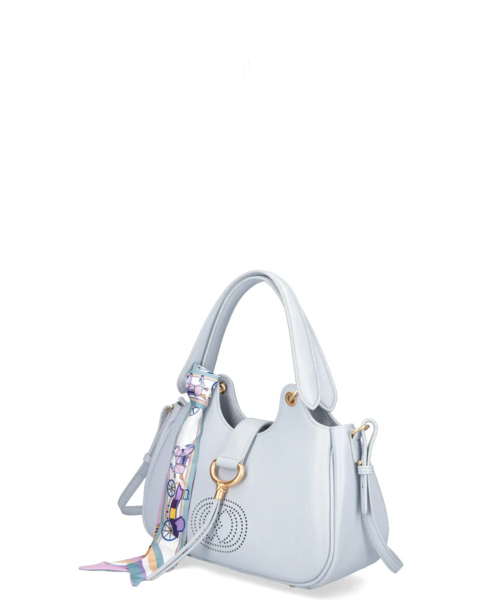 Borsa a mano in morbida pelle ,dotata di tracolla regolabile e removibile e foulard abbinato.chiusura con zip e patta con bottone magnetico.