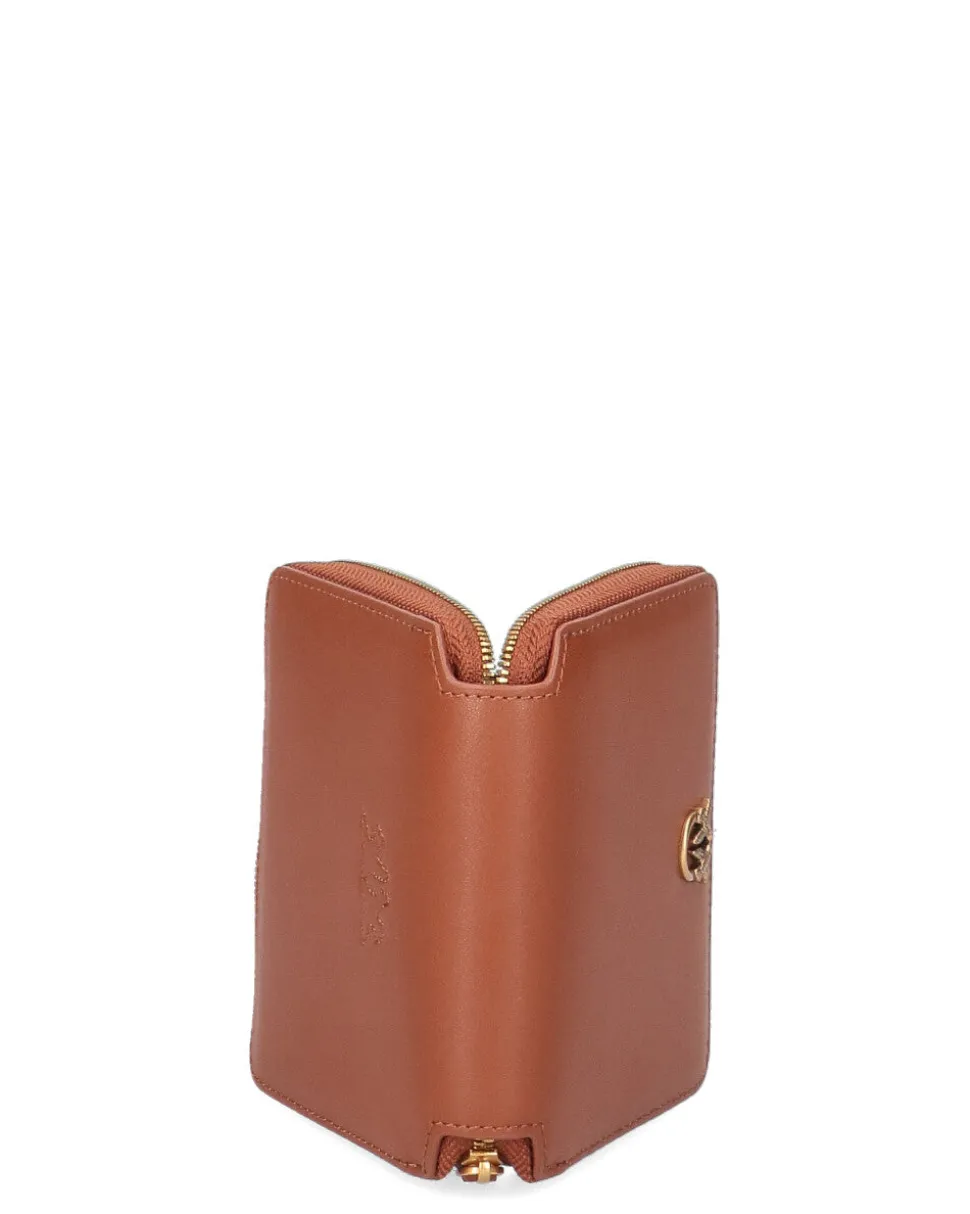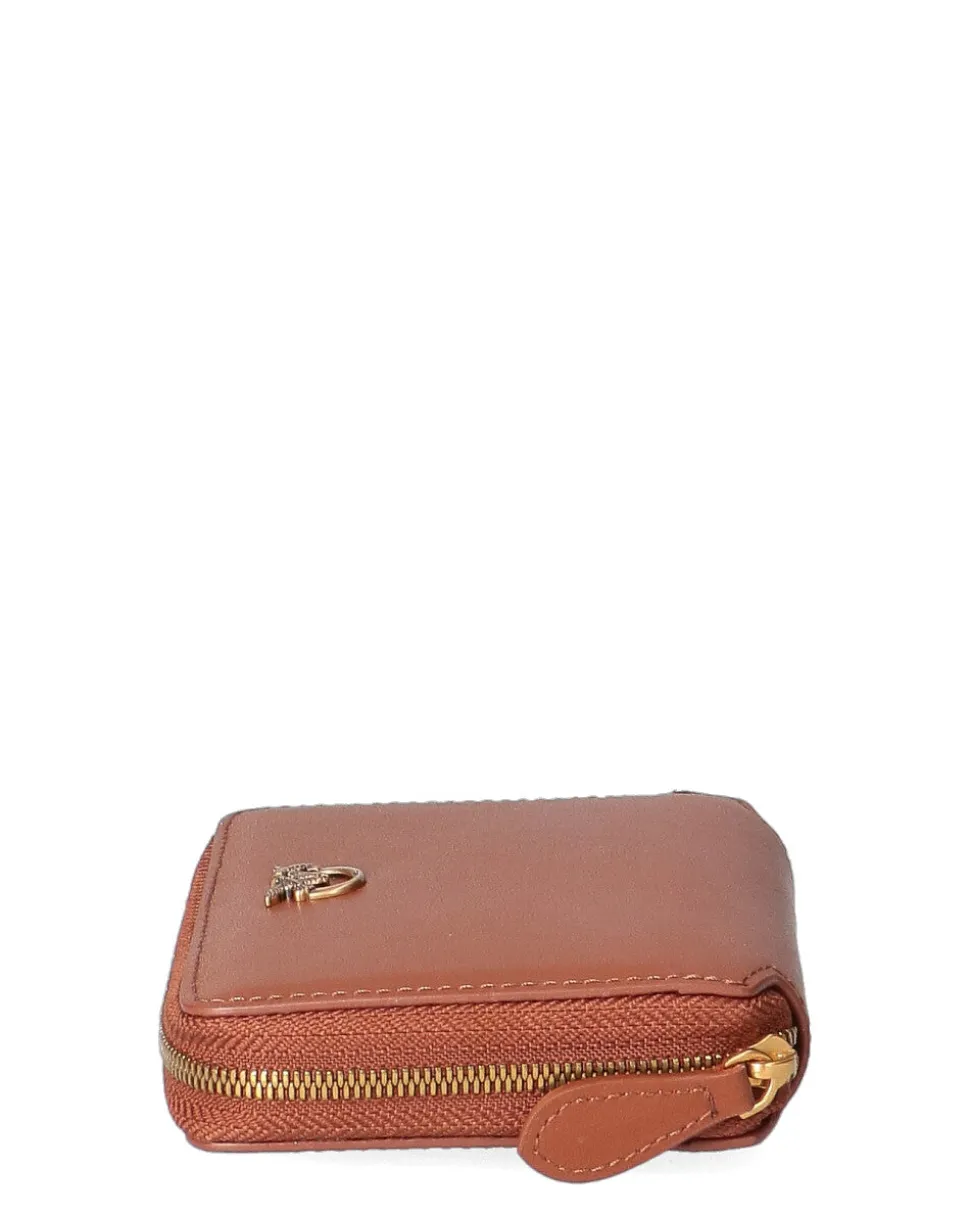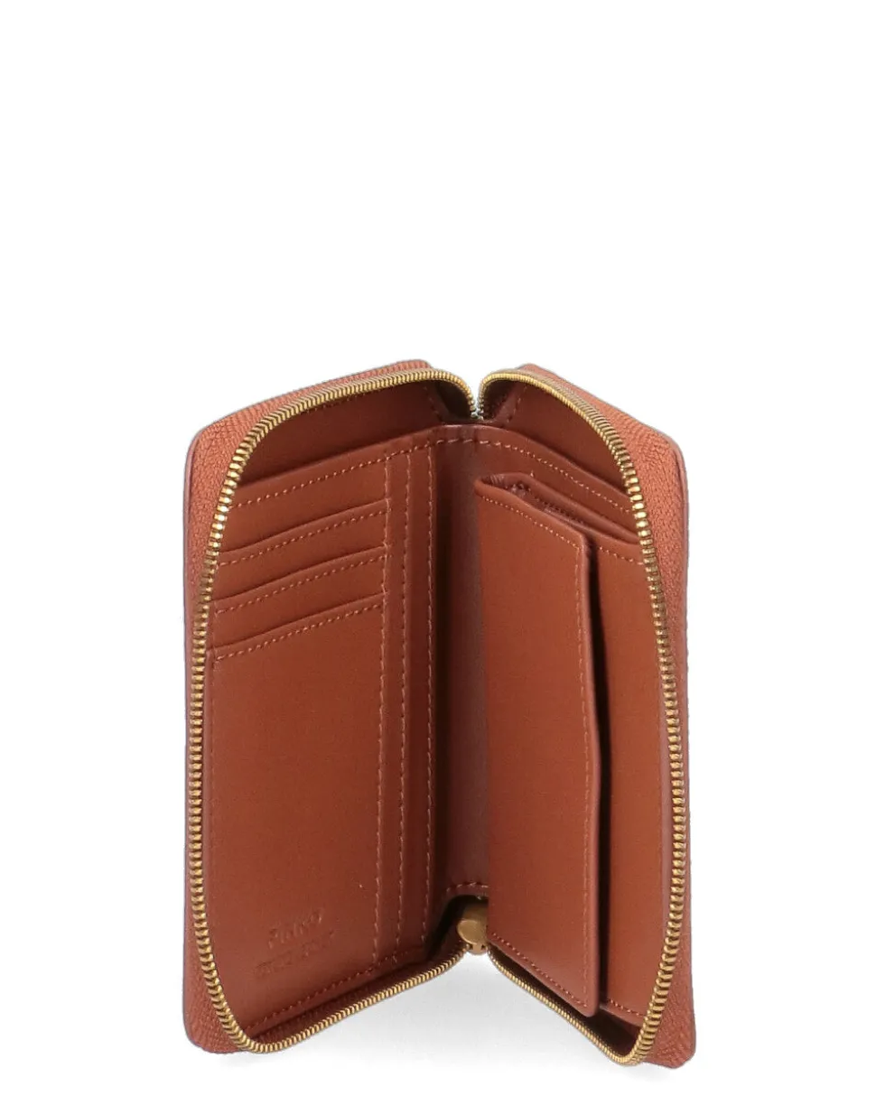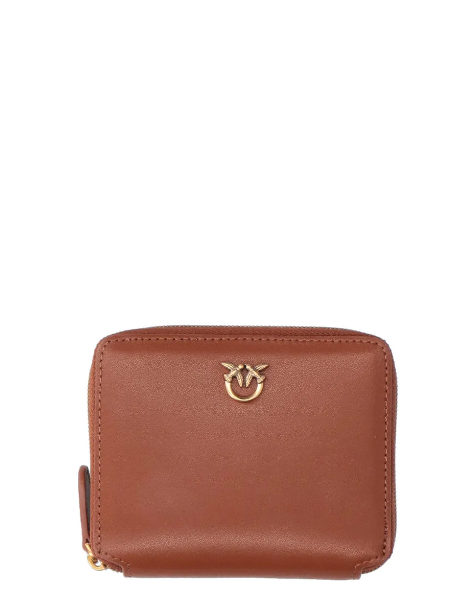 Portafoglio zip-around di forma quadrata in morbida pelle mano seta, personalizzato con placchetta Love Birds Diamond Cut su base in pelle. L’interno è foderato in polycotton. Chiusura con zip.