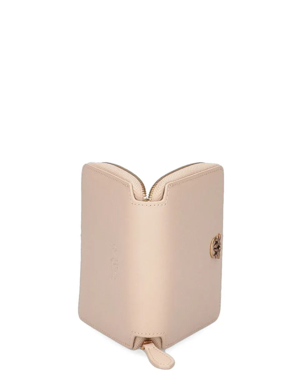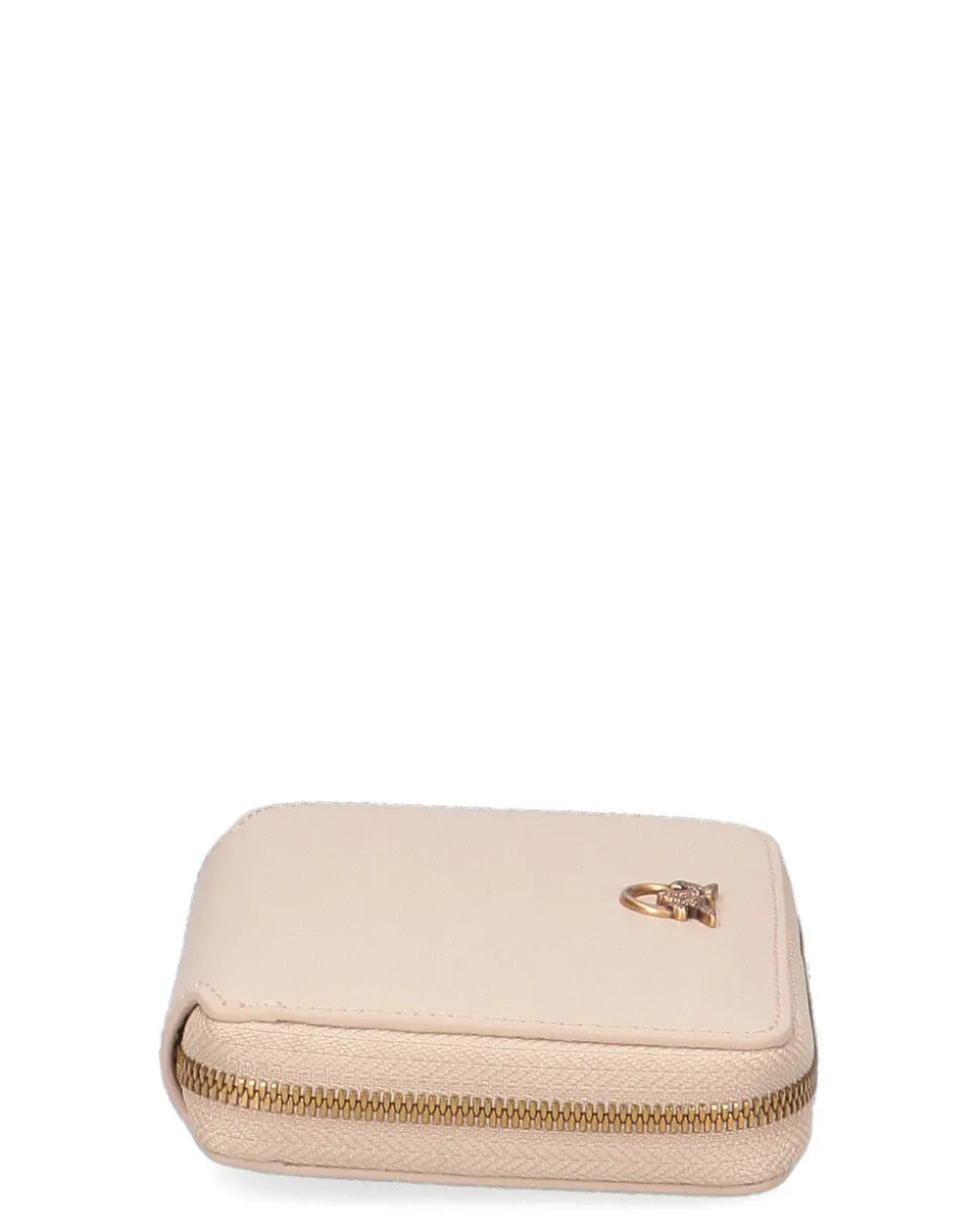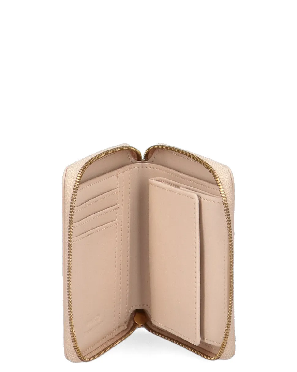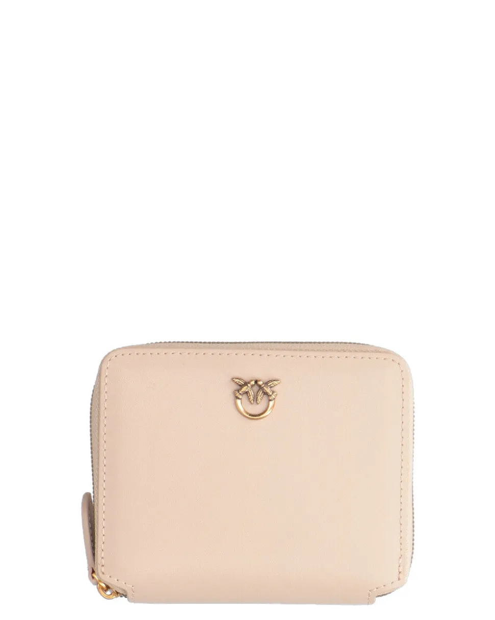 Portafoglio zip-around di forma quadrata in morbida pelle mano seta, personalizzato con placchetta Love Birds Diamond Cut su base in pelle. L’interno è foderato in polycotton. Chiusura con zip.