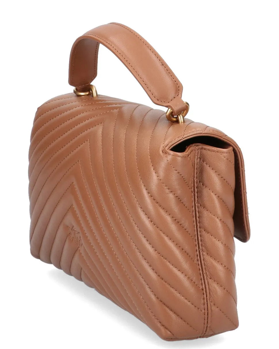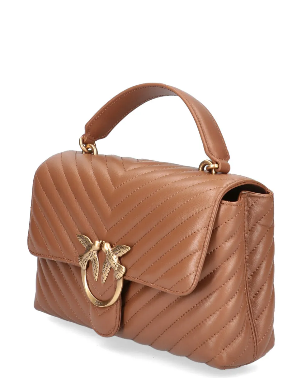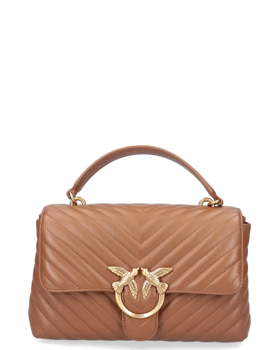 Classic Lady Love Bag Puff in nappa trapuntata con motivo chevron. La chiusura è completata dall’iconica fibbia in metallo Love Birds Diamond Cut. L’interno è foderato in microfibra scamosciata e comprende tramezza chiusa con zip e tasca a parete. La tracolla combina la classica catena metallica rotonda al pratico spallaccio regolabile in nappa.