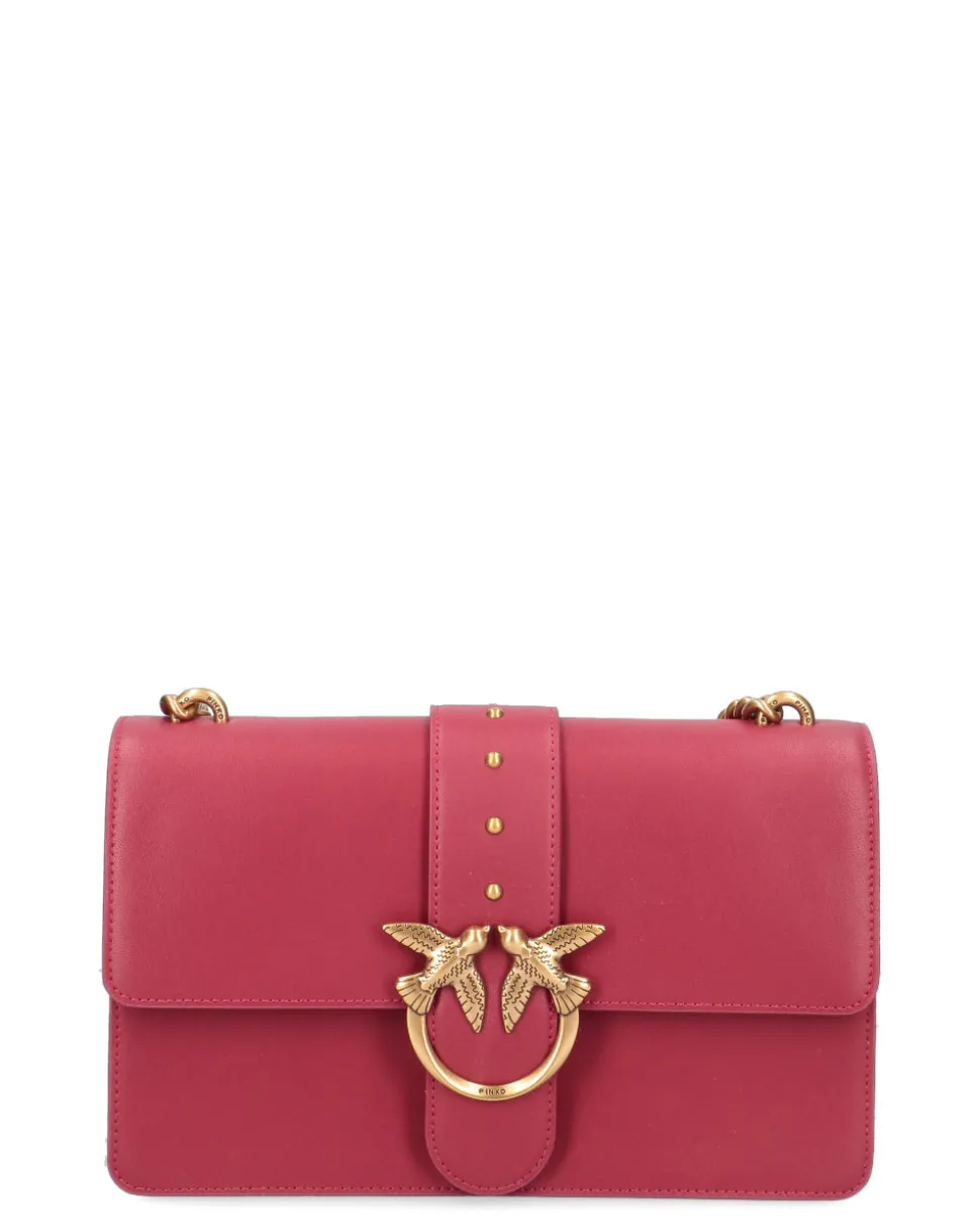 Classic Love Bag Icon in morbida pelle mano seta. La chiusura con baccello in pelle e borchie è completata dall’iconica fibbia in metallo Love Birds Diamond Cut in metallo. L’interno è foderato in microfibra scamosciata e comprende tramezza chiusa con zip e tasca a parete. La tracolla rimovibile combina la classica catena rotonda al pratico spallaccio in pelle regolabile.