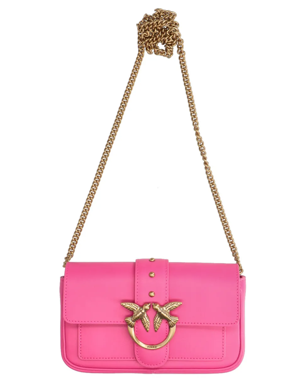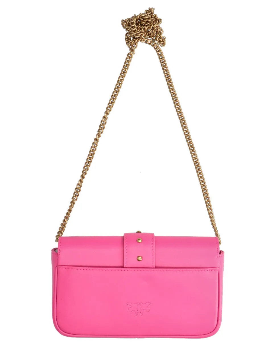Pocket Love Bag One in morbida pelle mano seta. La chiusura con baccello in pelle e piccole borchie è completata da fibbia in metallo Love Birds Diamond Cut. L’interno è foderato in tessuto tecnico e comprende tasca con zip e spazi per carte di credito. Tracolla rimovibile a catena rotonda sottile in metallo.