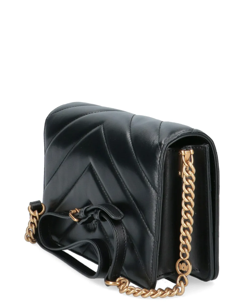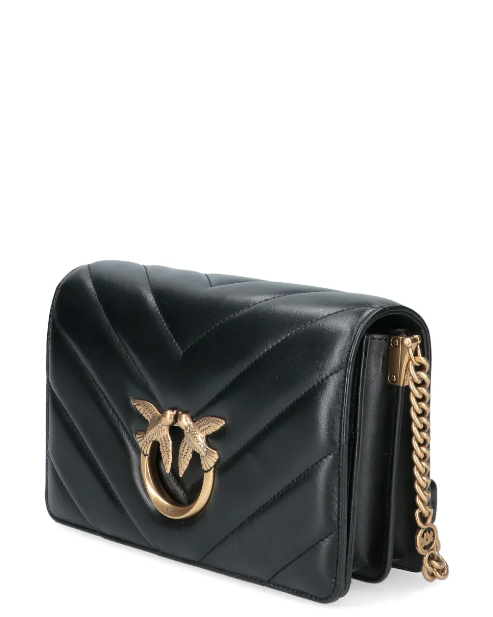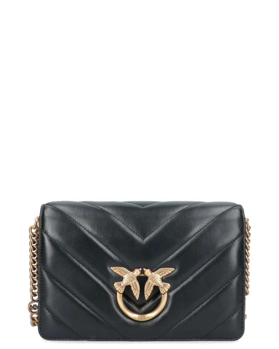 Classic Love Bag Click in nappa trapuntata con motivo chevron grande. La chiusura automatica nascosta è completata dall’iconica fibbia in metallo Love Birds Diamond Cut, galvanica antique gold, con effetto cut-out. L’interno è foderato in microfibra effetto scamosciato e comprende tramezza chiusa con zip e tasca a parete. La tracolla combina la catena metallica rotonda personalizzata con Love Birds al pratico spallaccio in pelle regolabile. -Dimensioni 16*25*8 cm (altezza-lunghezza-larghezza)
