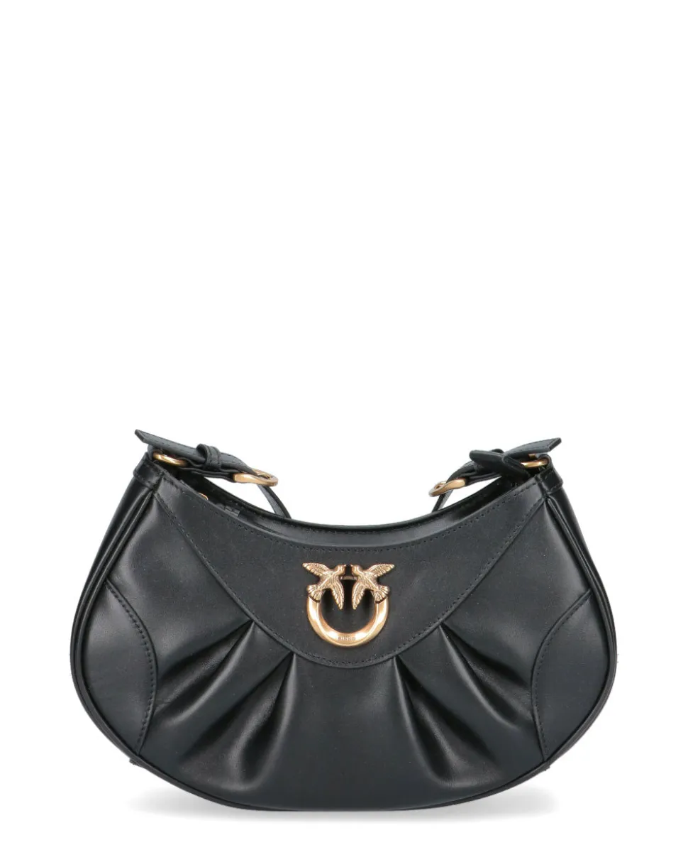 Love Bag Bon Bon dalla forma allungata con pieghe davanti in morbida pelle mano seta. Personalizzazione con logo Love Birds Diamond Cut in metallo davanti e interno foderato in microfibra scamosciata. Dettagli metalleria in galvanica gold. Chiusura con zip, tirazip in nappa. Completa di tracolla regolabile in pelle, impreziosita con borchie applicate.