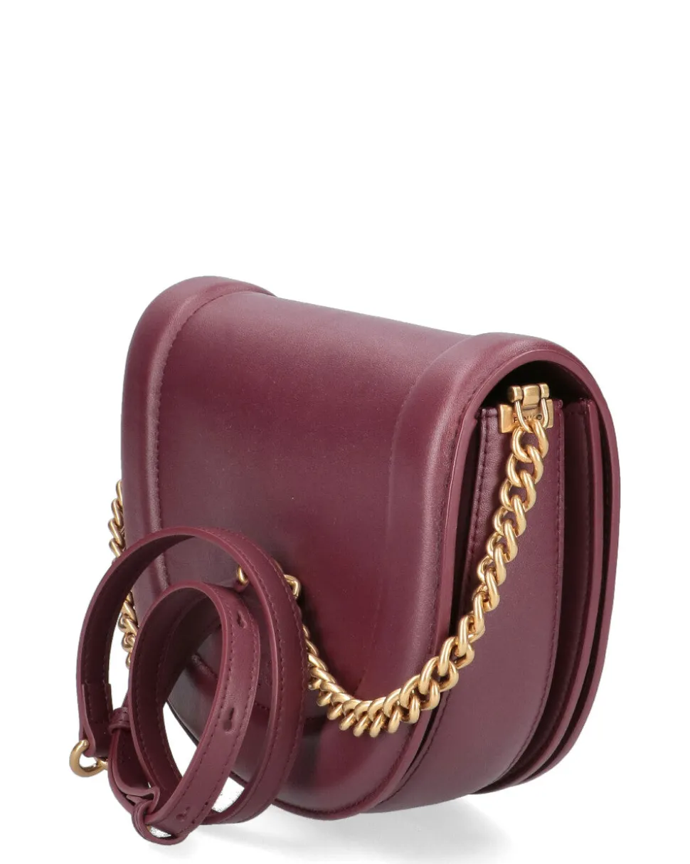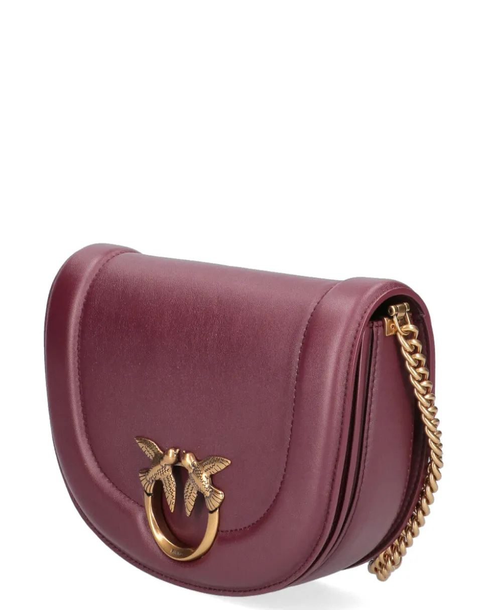 Classic Love Bag Click dalla forma arrotondata Round in morbida pelle liscia. La chiusura automatica nascosta è completata dall’iconica fibbia in metallo Love Birds Diamond Cut con effetto cut-out, galvanica antique gold. L’interno è foderato in microfibra e comprende tasca a parete in pelle. La tracolla combina la classica catena rotonda al pratico spallaccio regolabile