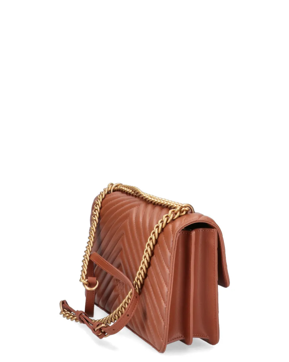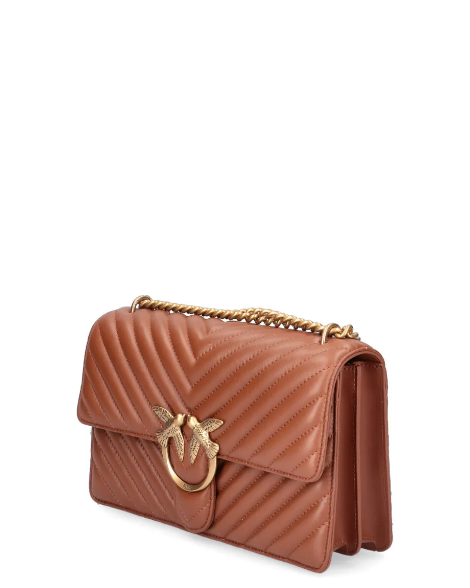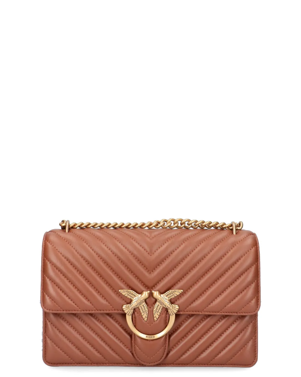 Classic Love Bag One in nappa trapuntata con motivo chevron. La chiusura è completata dall’iconica fibbia Love Birds Diamond Cut in metallo. L’interno è foderato in microfibra scamosciata e comprende tramezza chiusa con zip e tasca a parete in pelle. La tracolla combina la classica catena rotonda al pratico spallaccio in pelle regolabile.