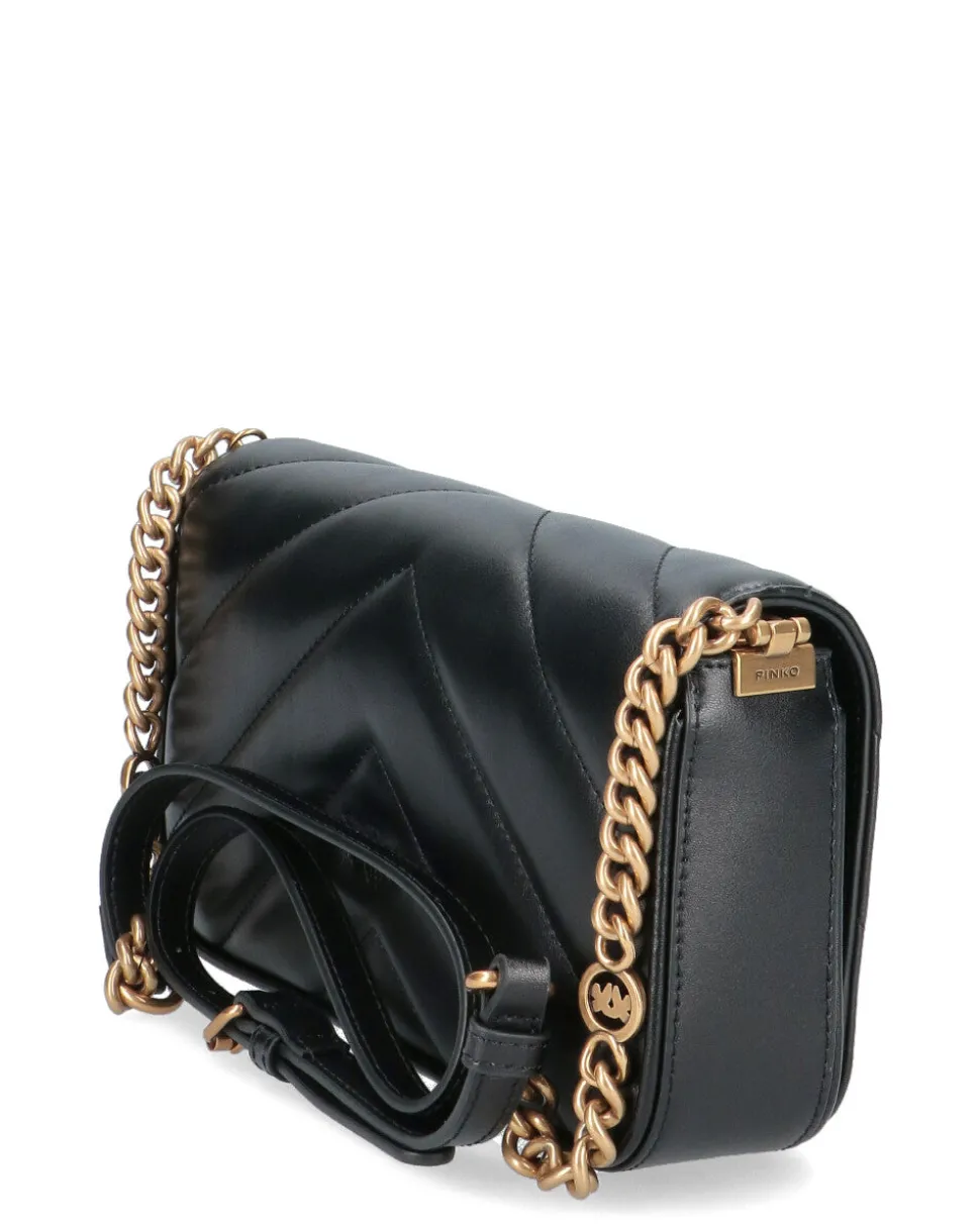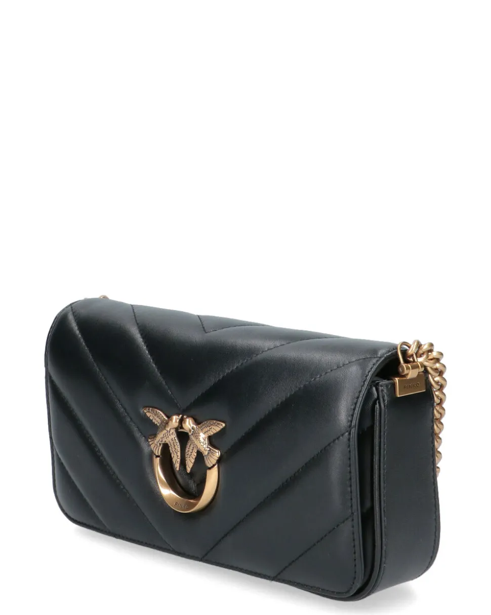 Mini Love Bag Click dalla shape allungata Baguette in nappa trapuntata con motivo chevron grande. La chiusura automatica nascosta è completata dall’iconica fibbia in metallo Love Birds Diamond Cut con effetto cut-out. L’interno è foderato in microfibra scamosciata. Completa sia di tracolla che combina la catena metallica rotonda personalizzata con Love Birds al pratico spallaccio in pelle regolabile che manico in pelle rimovibile con moschettoni.