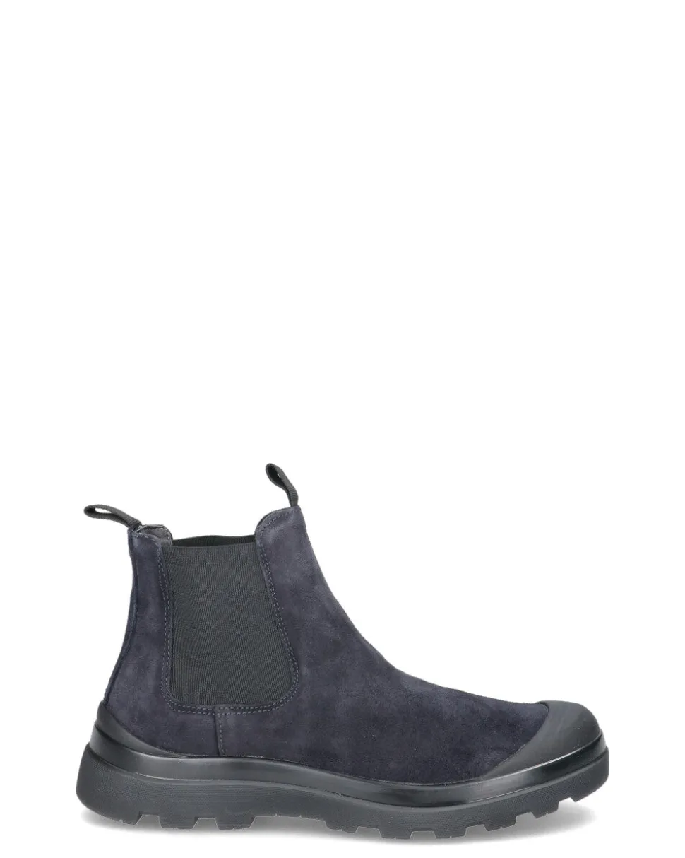 Stivaletti Beatle uomo P03 con tomaia in suede verde militare, foderati in microfibra. Suola di 2,5 cm dal design a forma di “guscio” ed elastici laterali neri. La linea P03 è estremamente protettiva con un gusto tecno-cool a prova di globe-trotter.
