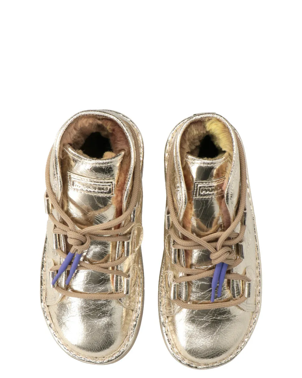 -Allacciatura con passalacci a vista ispirata alle calzature da montagna, che costituisce un’ulteriore protezione dal freddo, e lacci tondi con punte colorate