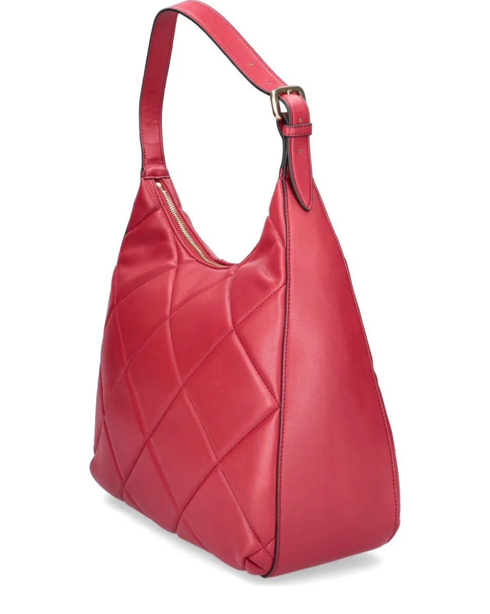 Hobo bag caratterizzata dalla contaminazione con il mondo Heritage. La fascia centrale in pattern Heritage si abbina al macro matelassé, reso ancora più ricercato da borchie logate in galvanica oro chiaro. Tracolla regolabile per doppia portabilità: a mano