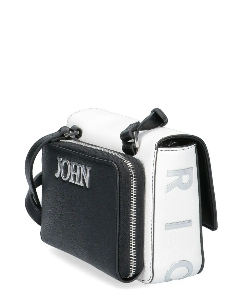 Borsa con chiusura magnetica, unico scomparto e tasca con zip. Logo in metallo frontale e lateralmente. Tracolla nera regolabile. Tasca esterna sul retro con zip e logo. Dimensioni: 19 x 13 x 6 cm.