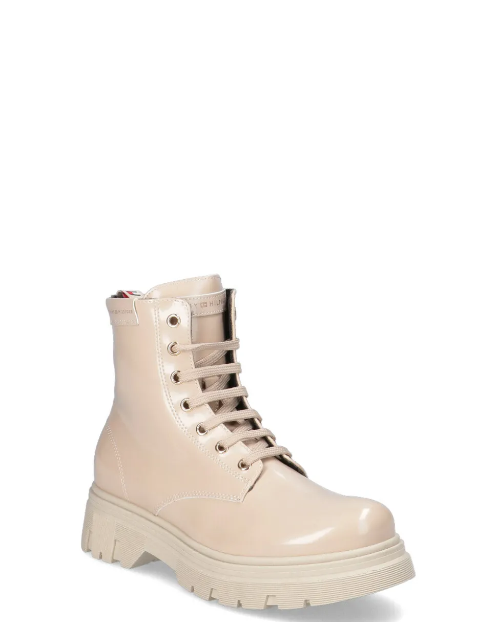 Stivaletto in ecopelle con zip laterale e lacci