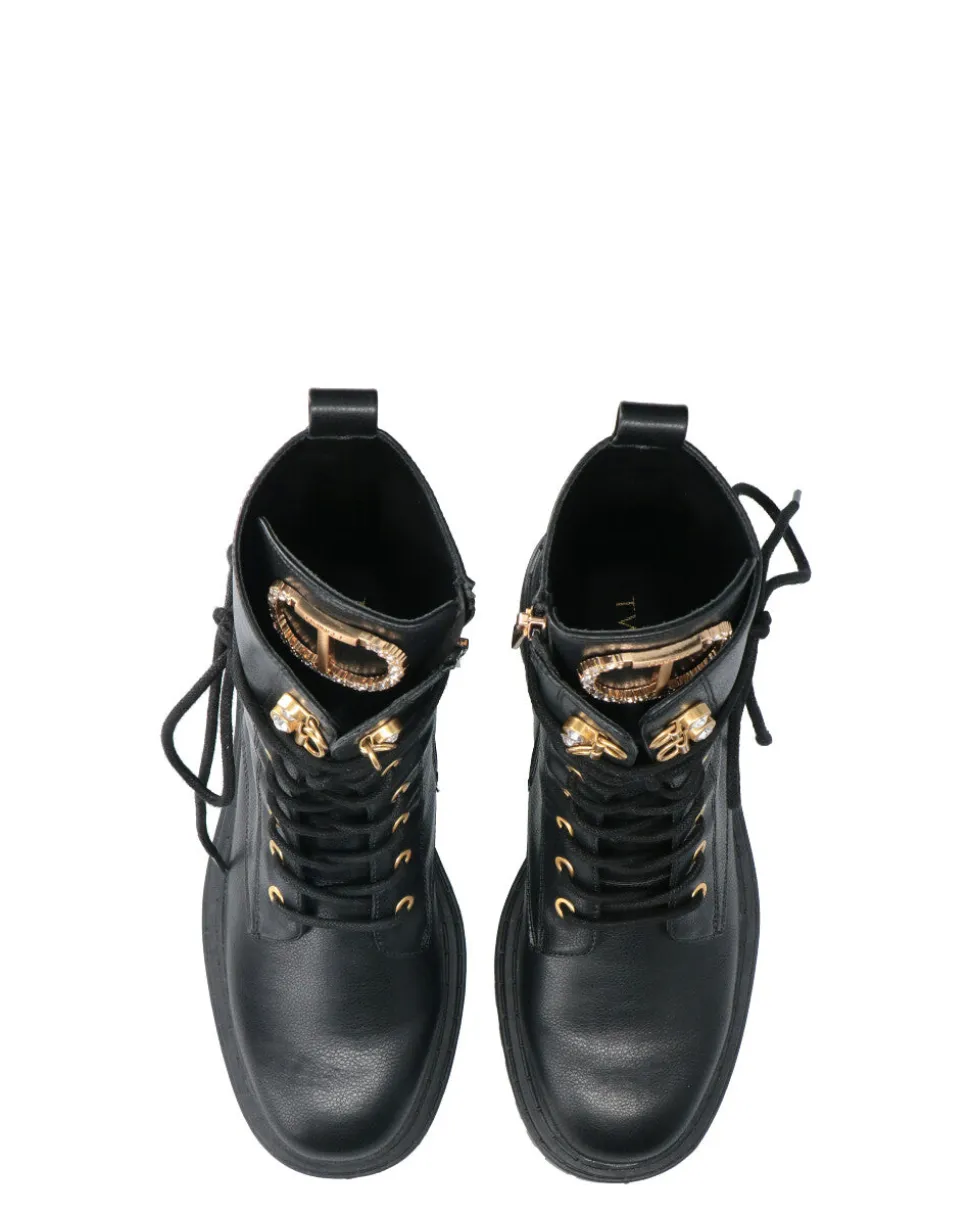 Stivaletti con cinturino alla caviglia e morsetto Oval T, chiusura con zip al fianco e fondo chunky in gomma.