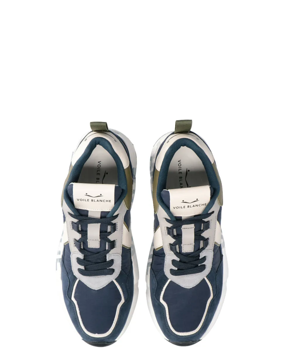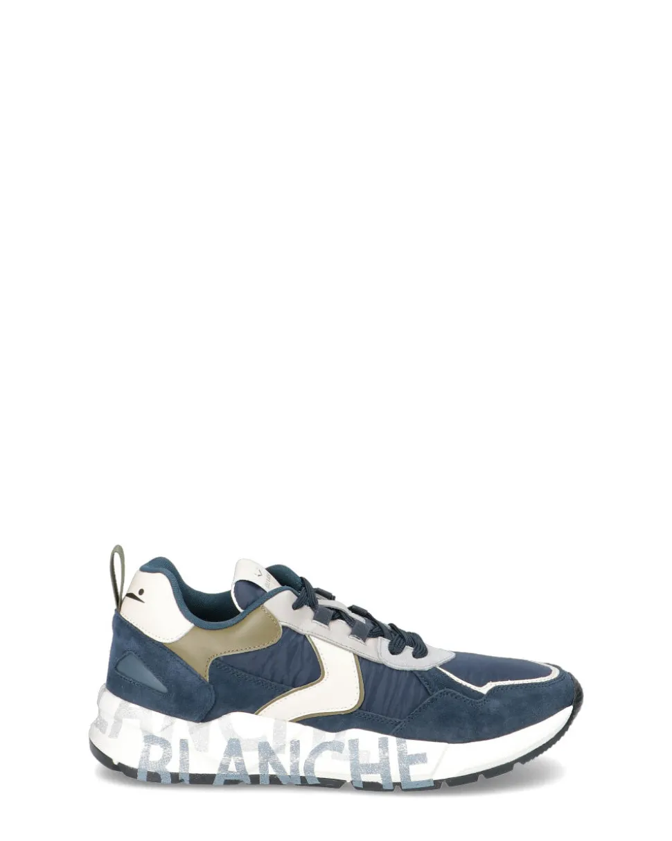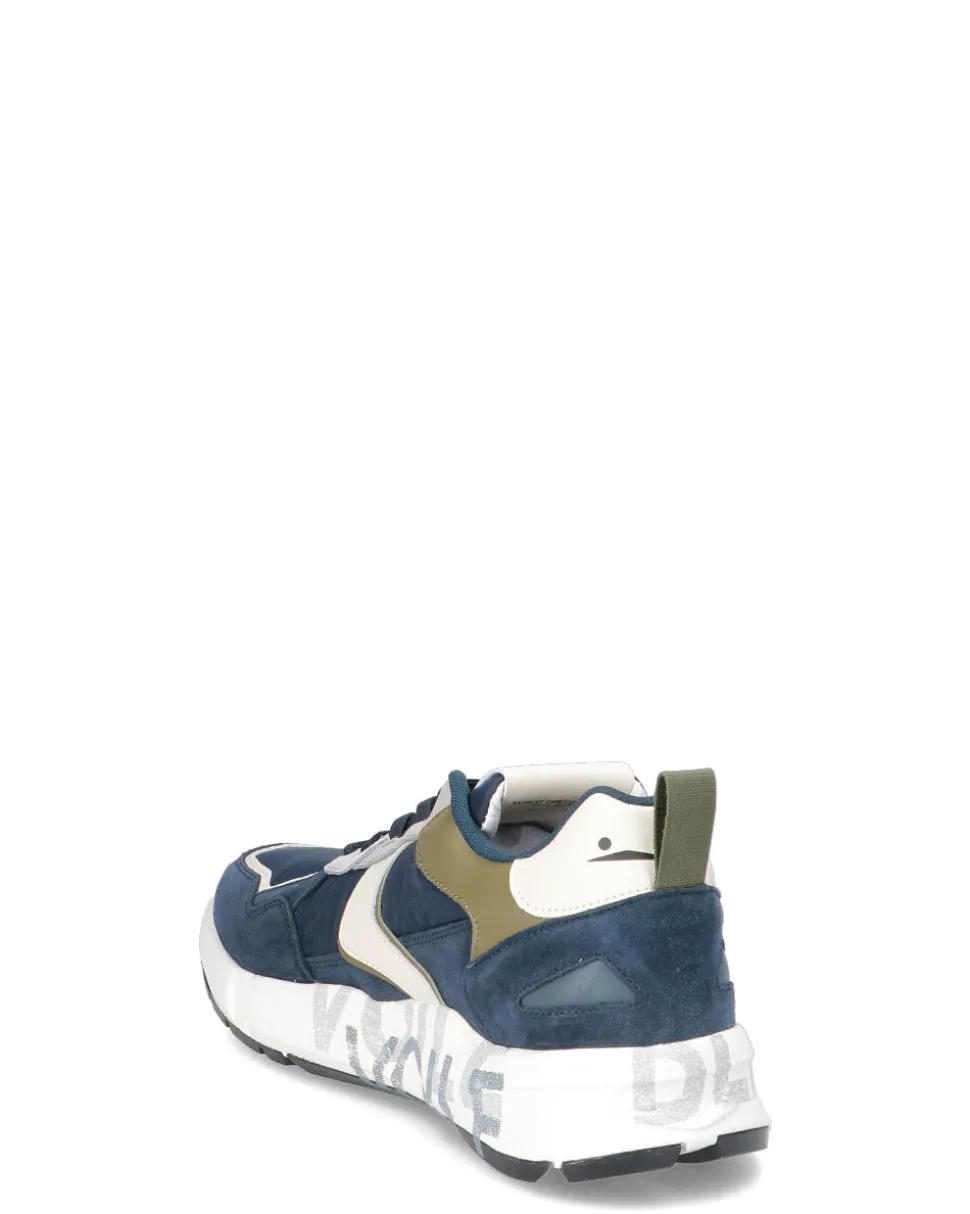 Sneakers in pelle e tessuto -Chiusura con lacci -Fondo gomma -Altezza fondo 4 cm
