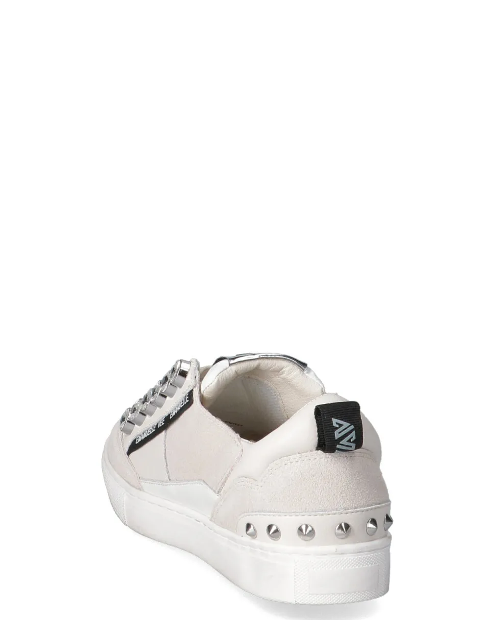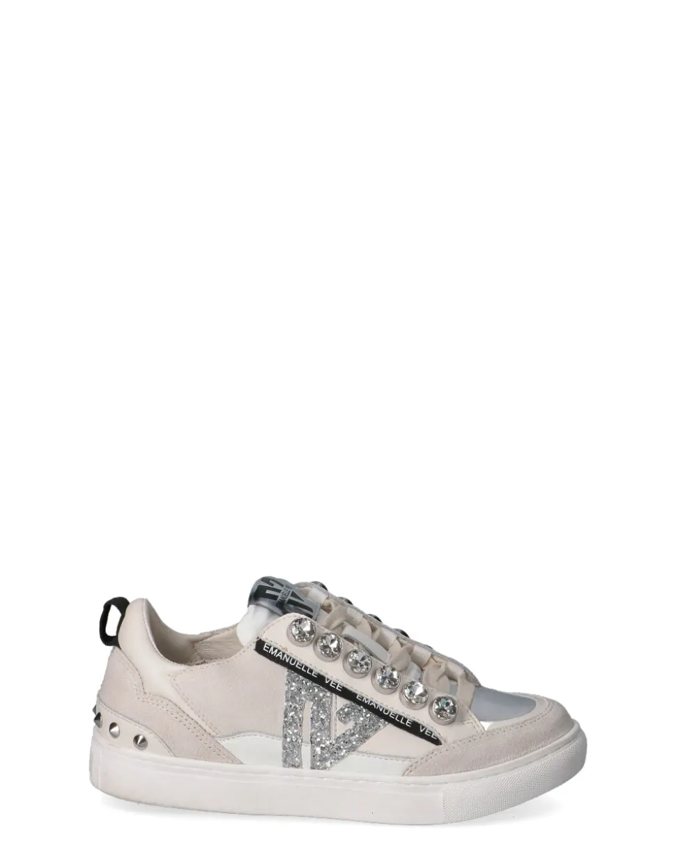 Sneaker allacciata multi materiale con dettaglio strass sull’allacciatura