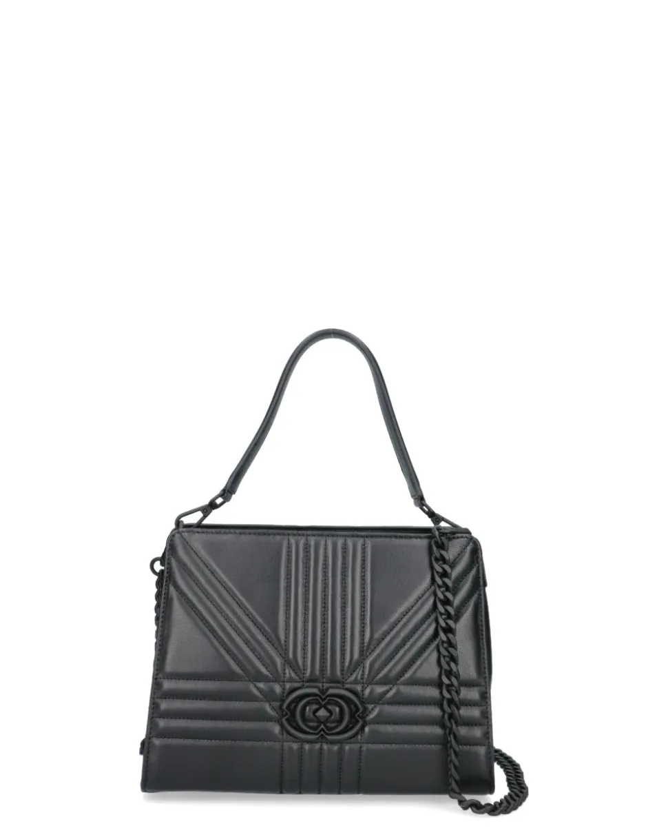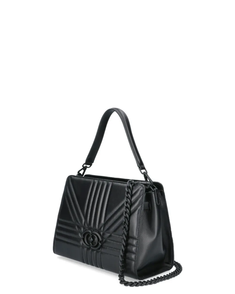 Borsa shopping in pelle nappata, imbottita e trapuntata con logo in tinta, tracolla e manico rimovibile.