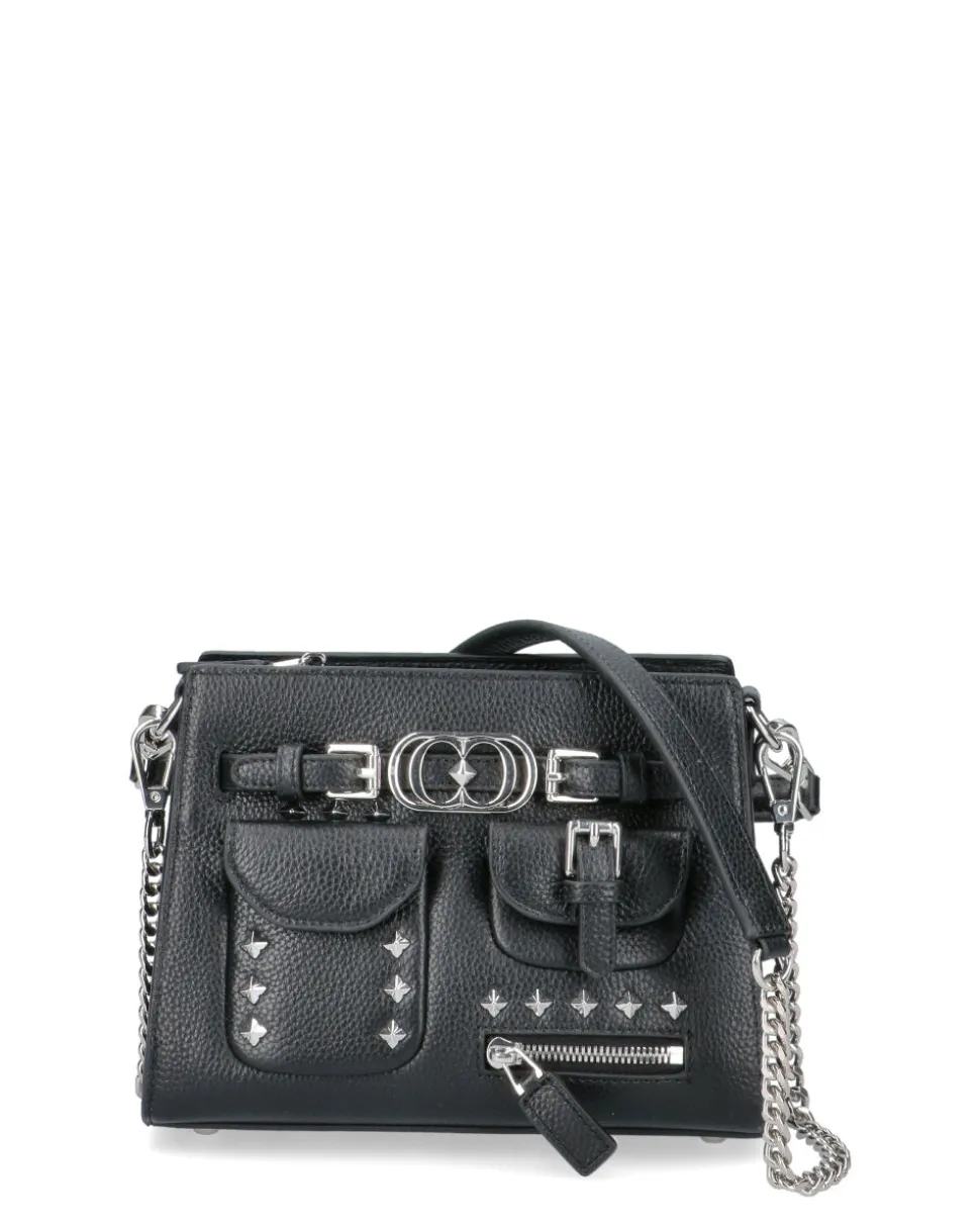 Tracolla small in pelle con borchie.Chiusura con zip. Tracolla removibile
