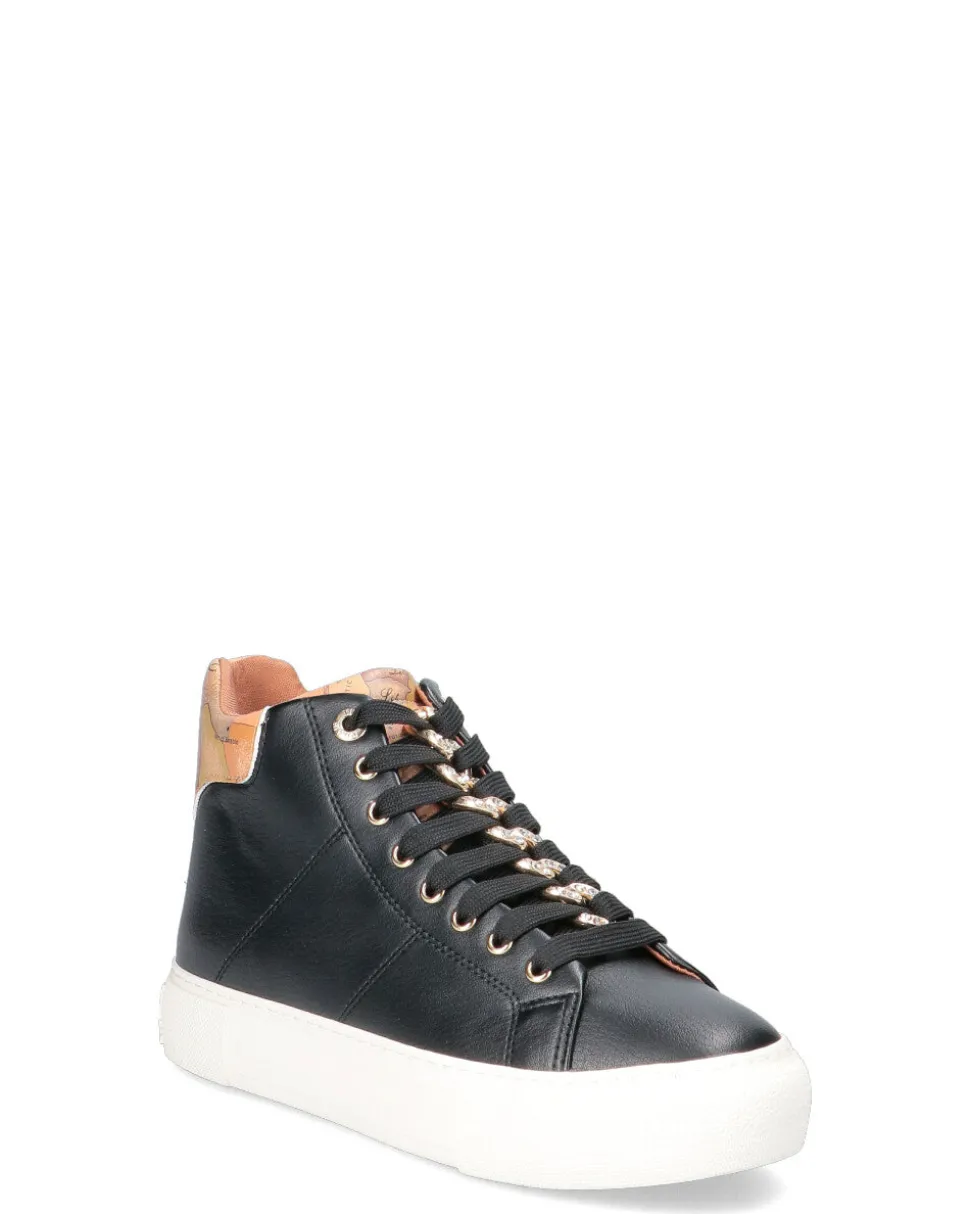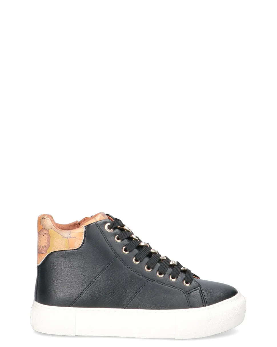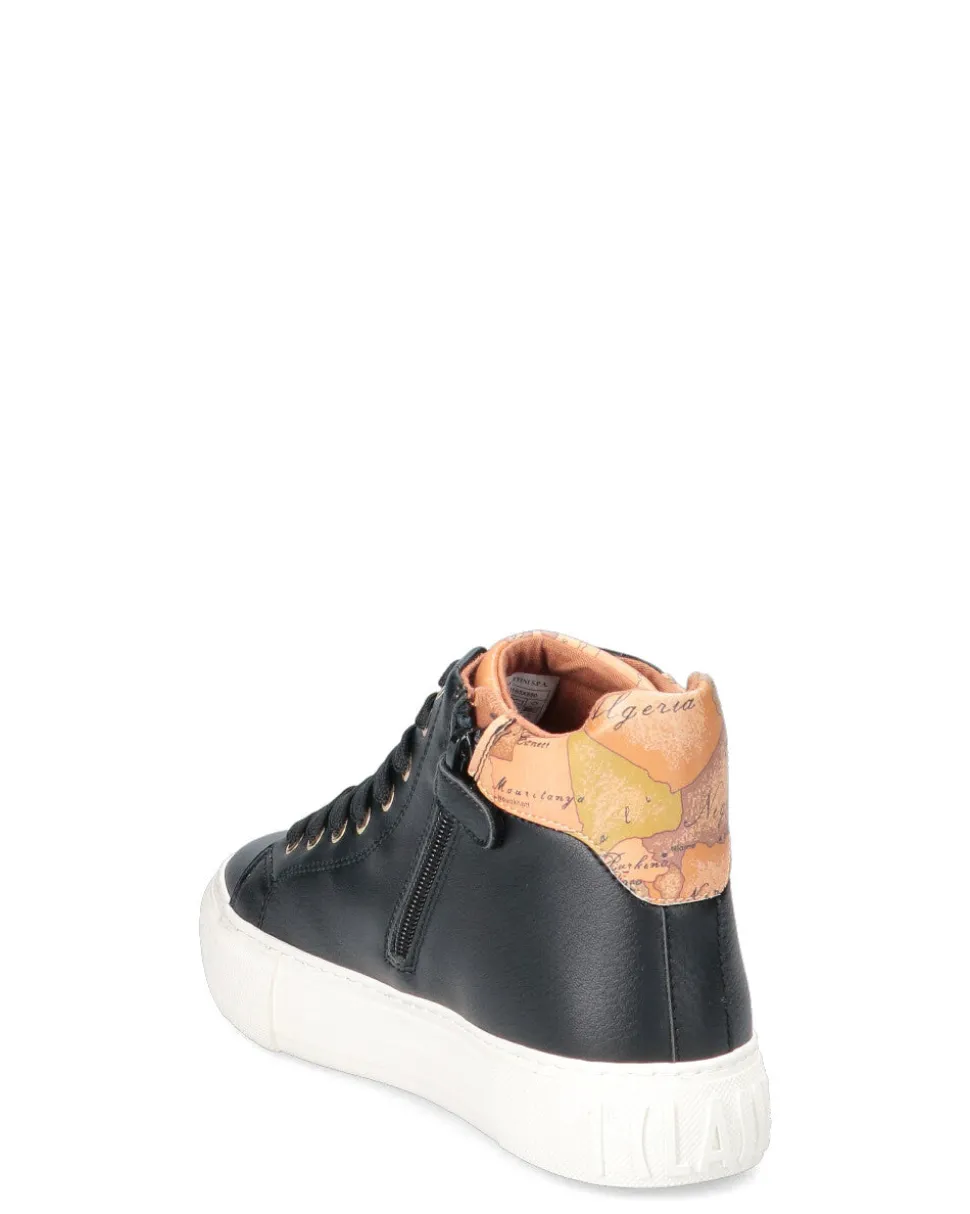 Sneakers alta in ecopelle con zip laterale e lacci frontali