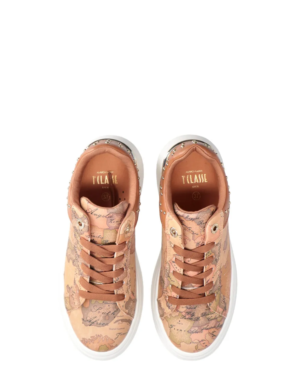 Sneakers in ecopelle con stampa geo