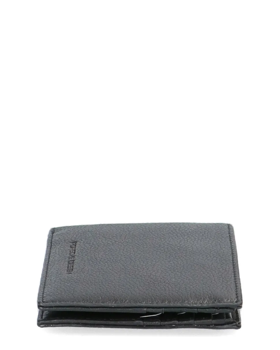 Realizzato in pelle di vitello Martellato nero, questo portafoglio può contenere carte di credito e banconote all’interno delle 4 tasche disponibili.