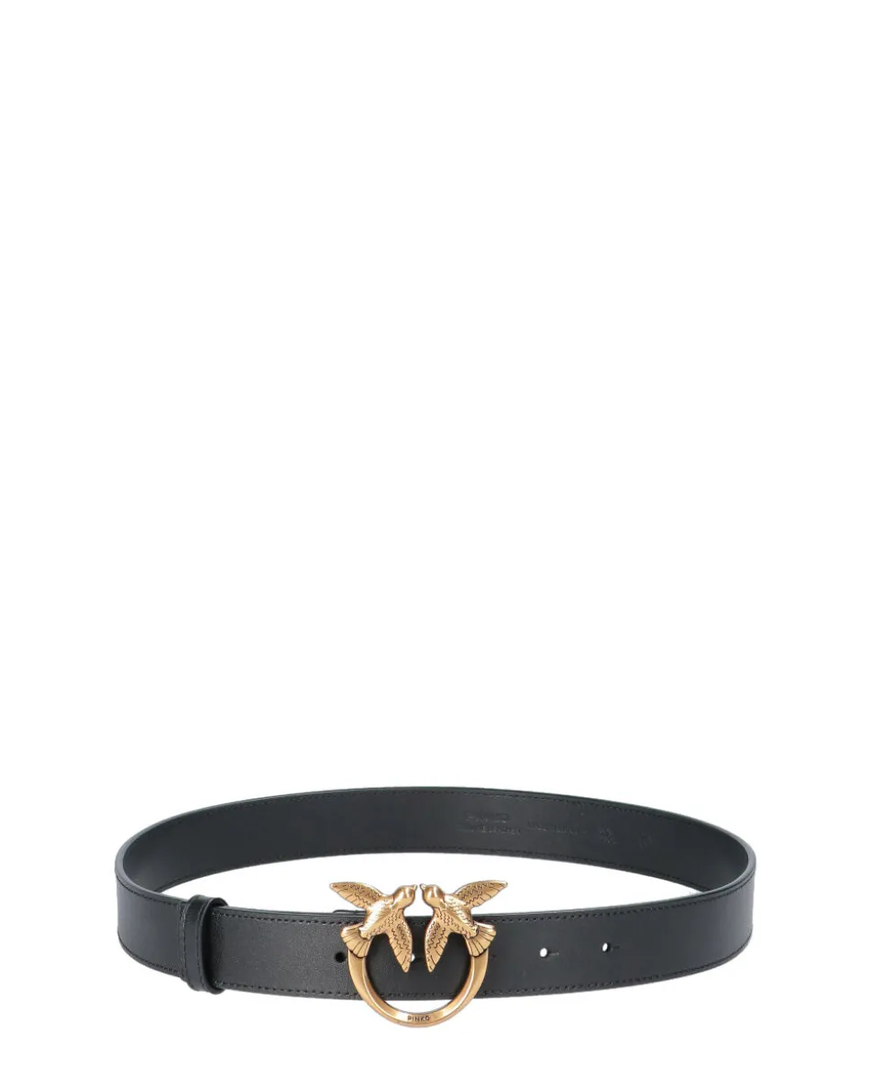 Cintura in morbida pelle mano seta con fibbia Love Birds Diamond Cut in metallo. Altezza 3 cm