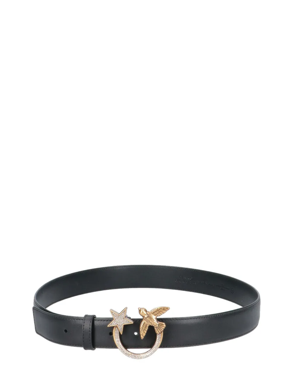 Cintura in morbida pelle mano seta con fibbia Love Birds Diamond Cut in metallo. Altezza 3 cm