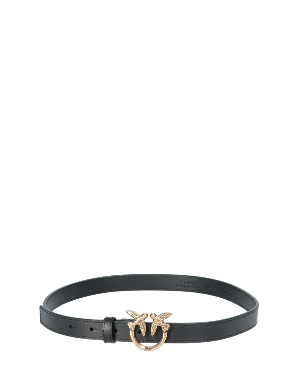 Cintura sottile in morbida pelle mano seta con fibbia Love Birds Diamond Cut in metallo.