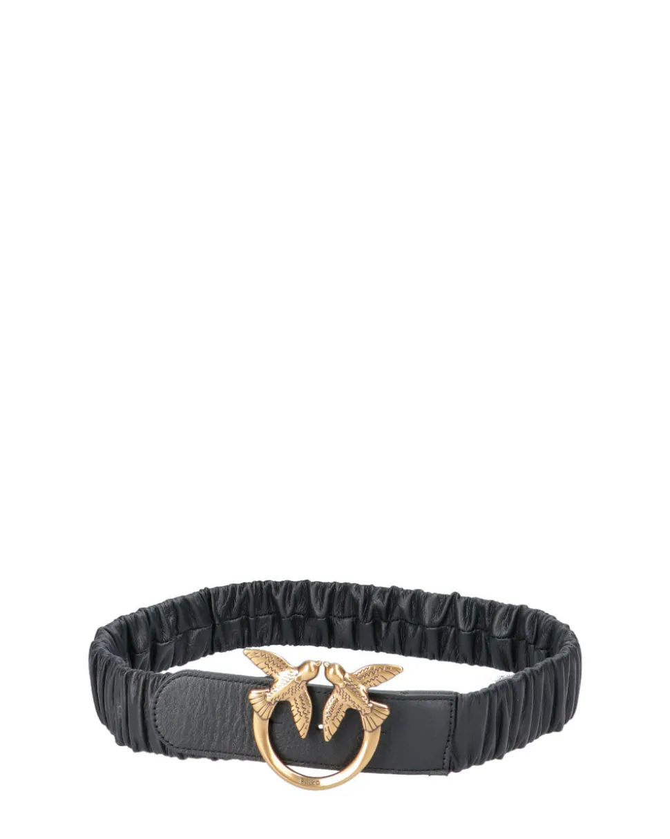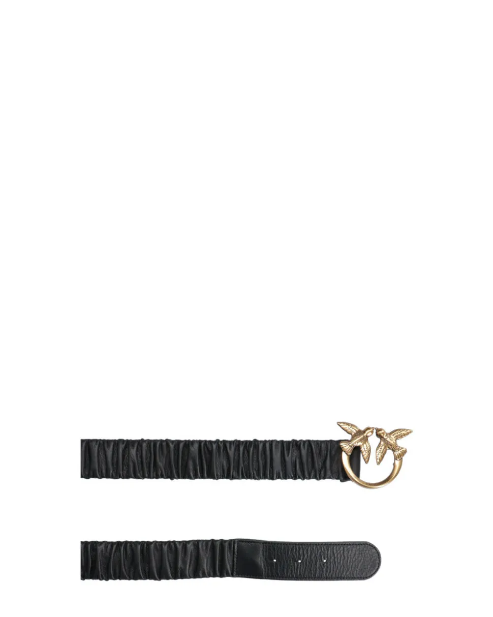 Cintura da portare alta in vita in nappa dal particolare effetto arricciato e fibbia Love Birds Diamond Cut in metallo.