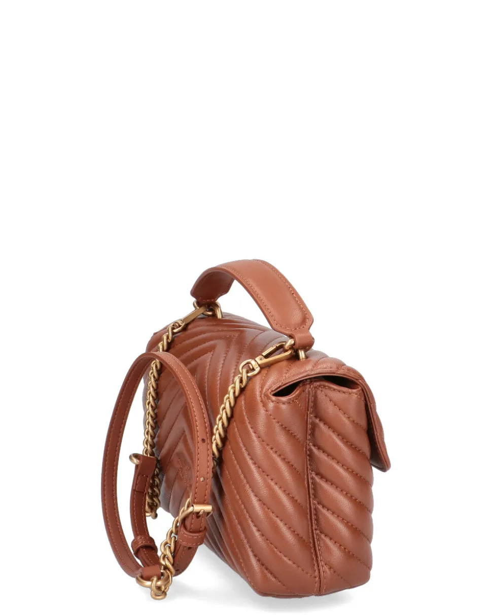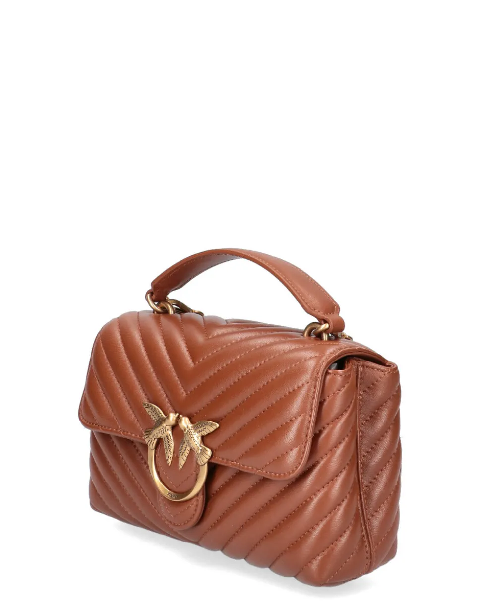 Mini Lady Love Bag Puff in nappa trapuntata con motivo chevron. La chiusura è completata dall’iconica fibbia in metallo Love Birds Diamond Cut. L’interno è foderato in microfibra scamosciata e comprende tramezza chiusa con zip e tasca a parete. Manico top handle e tracolla che combina la classica catena metallica rotonda al pratico spallaccio regolabile in nappa Misure 16*23*7 (altezza-lunghezza-larghezza)