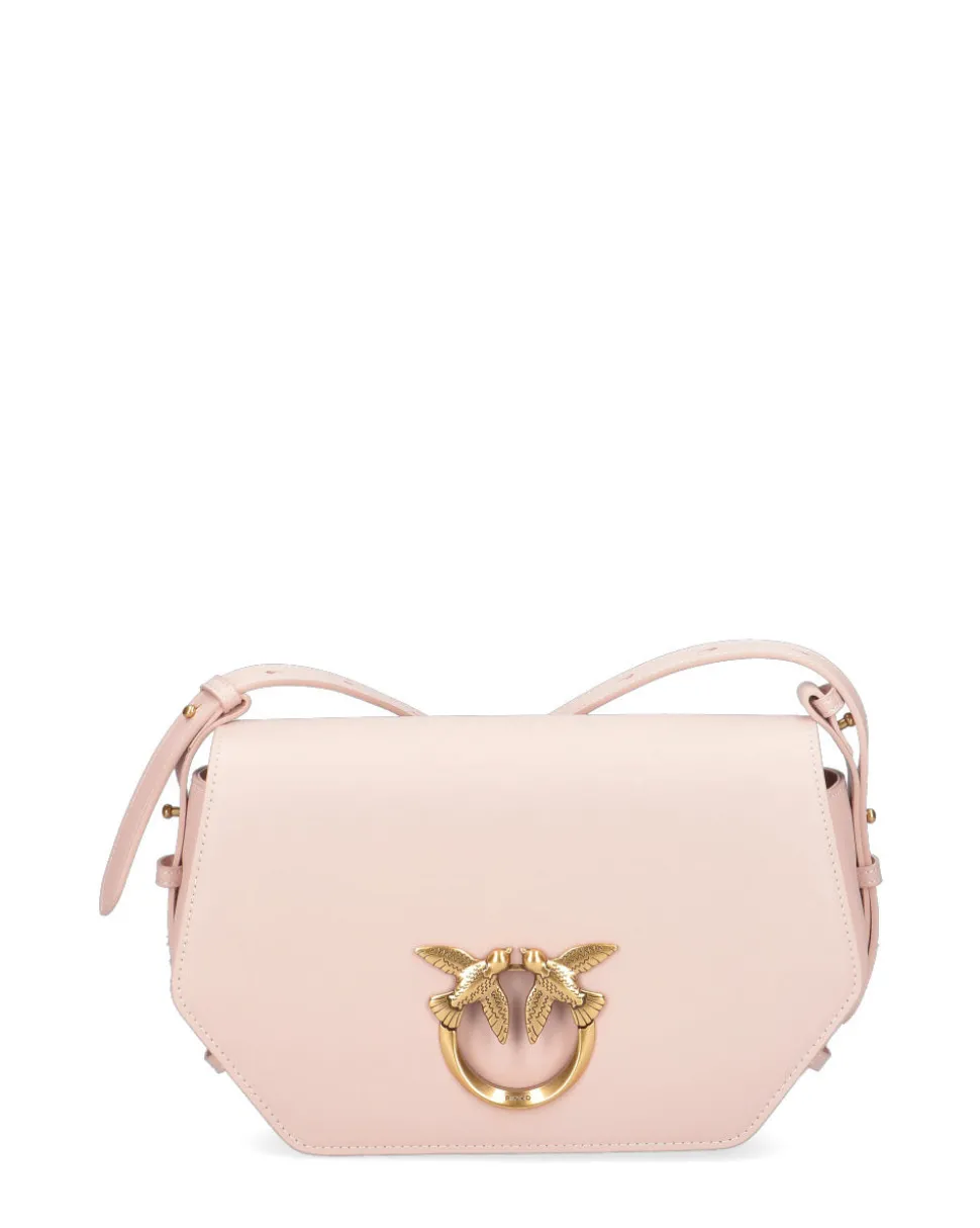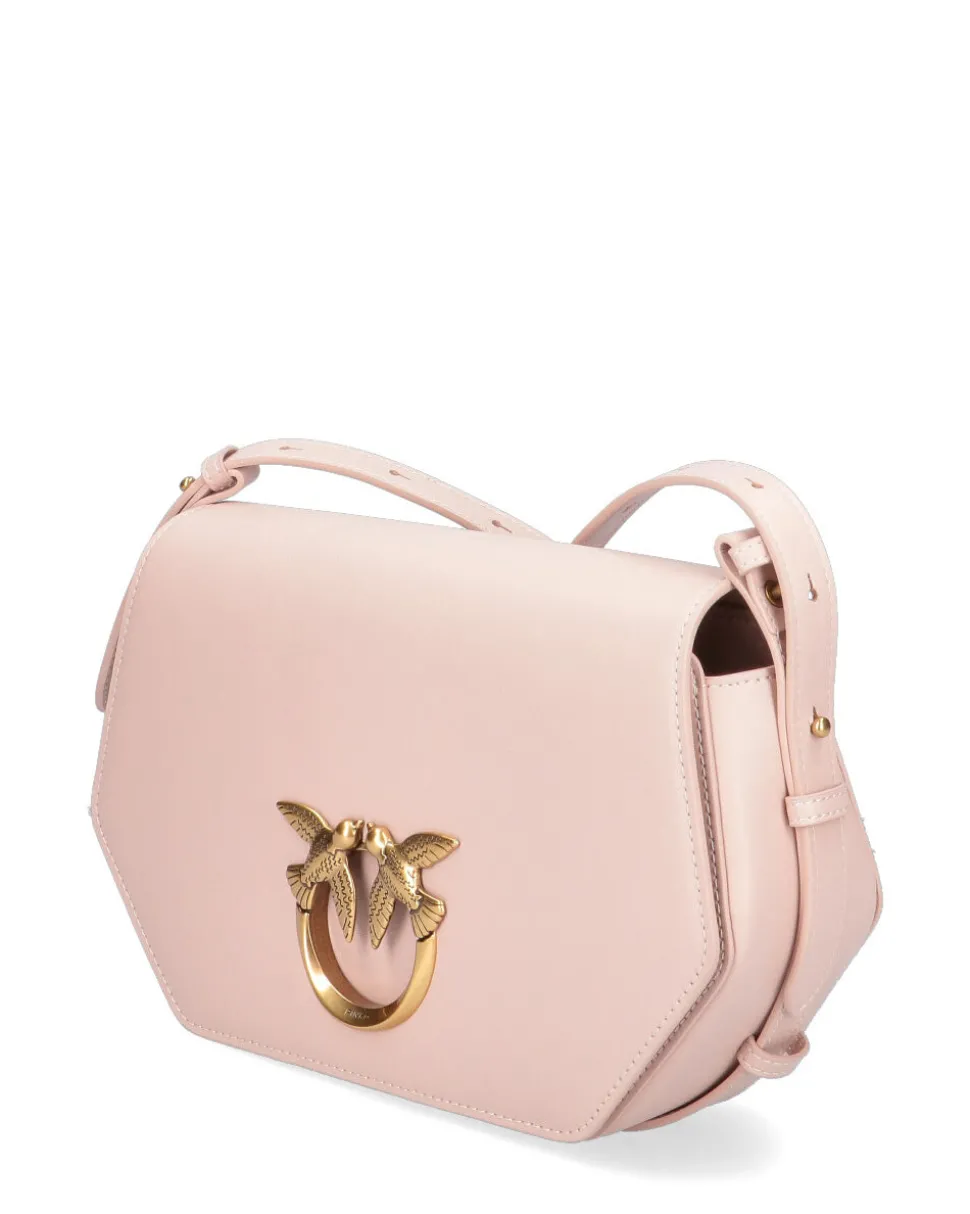 Classic Love Bag Click Exagon in morbida pelle mano seta. La chiusura automatica nascosta è completata dall’iconica fibbia in metallo Love Birds Diamond Cut con effetto cut-out. L’interno è foderato in polycotton e comprende una tasca a parete in pelle. Completa di tracolla in pelle, regolabile e rimovibile.